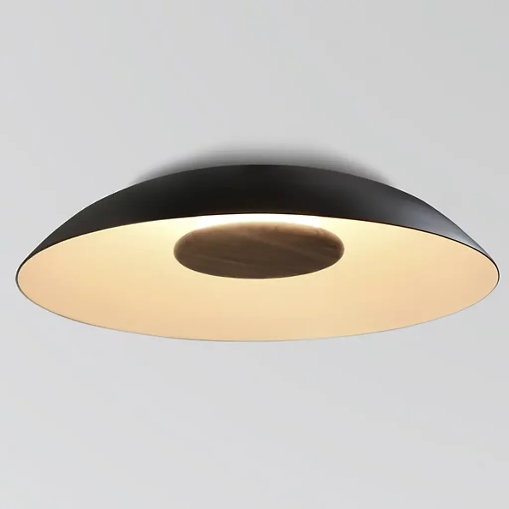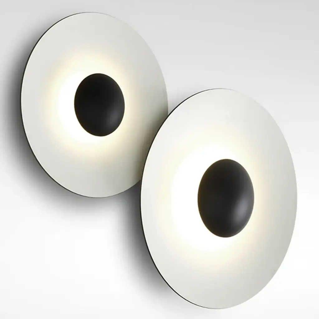 A complete illumination. The Ginger LED Wall Sconce by Marset infuses a sculptural and contemporary allure to living spaces, bedrooms, or hallways. Wood, paper, and resin are pressed together under high pressure to create a circular structure with a curved center. A metal cup at the front conceals an integrated LED light source to deliver warm, glare-free light that is reflected on the laminated structure to create an eye-catching lighting experience.