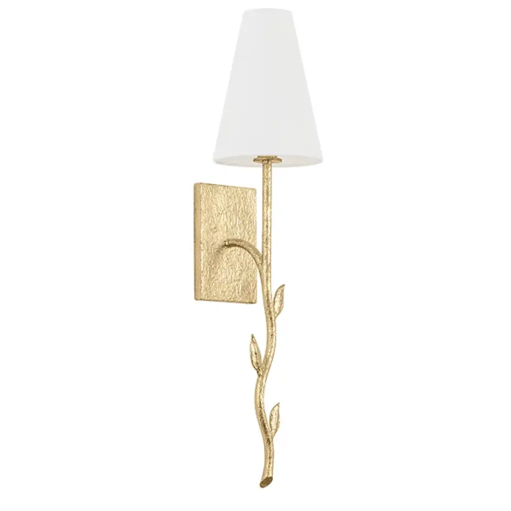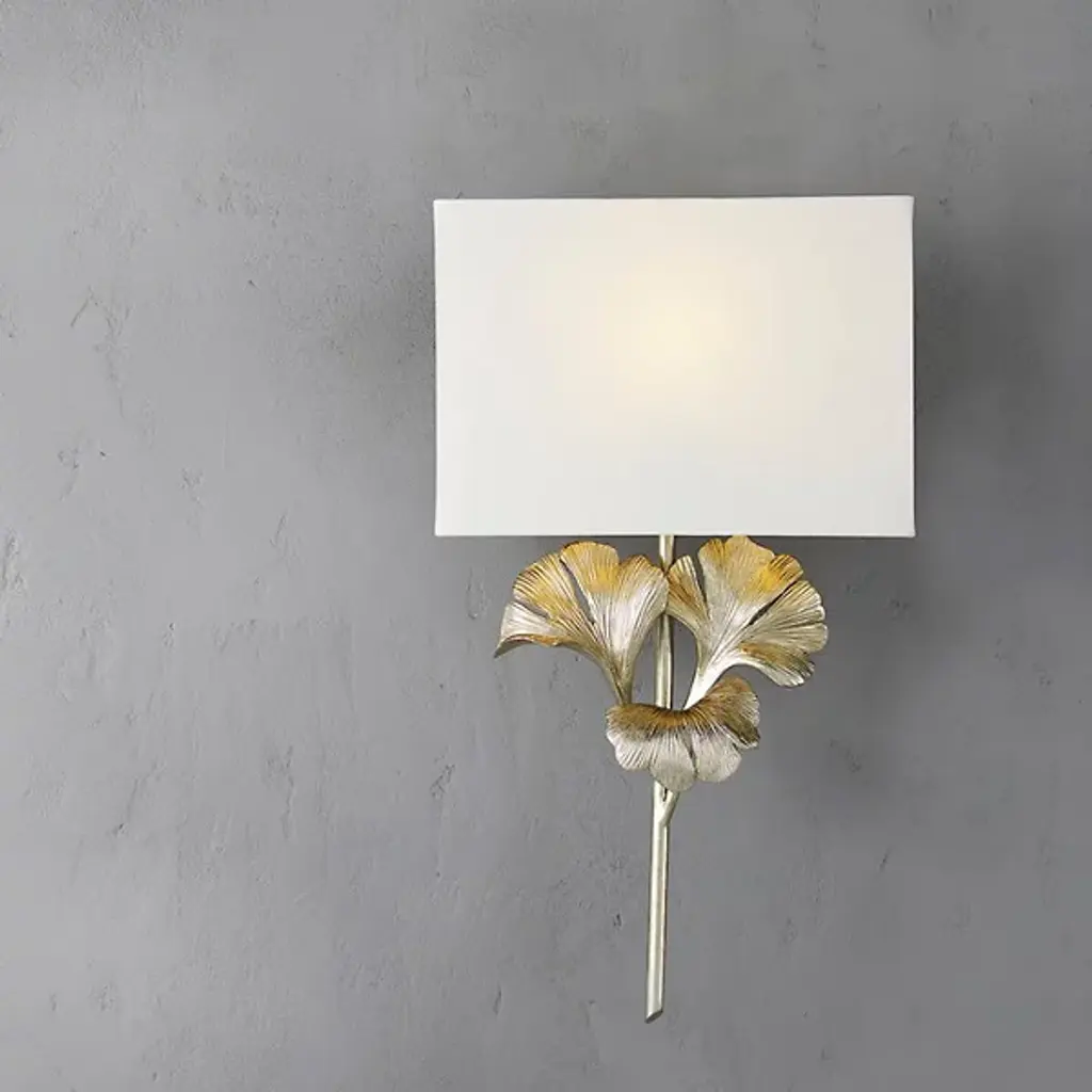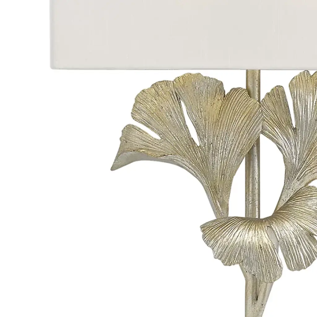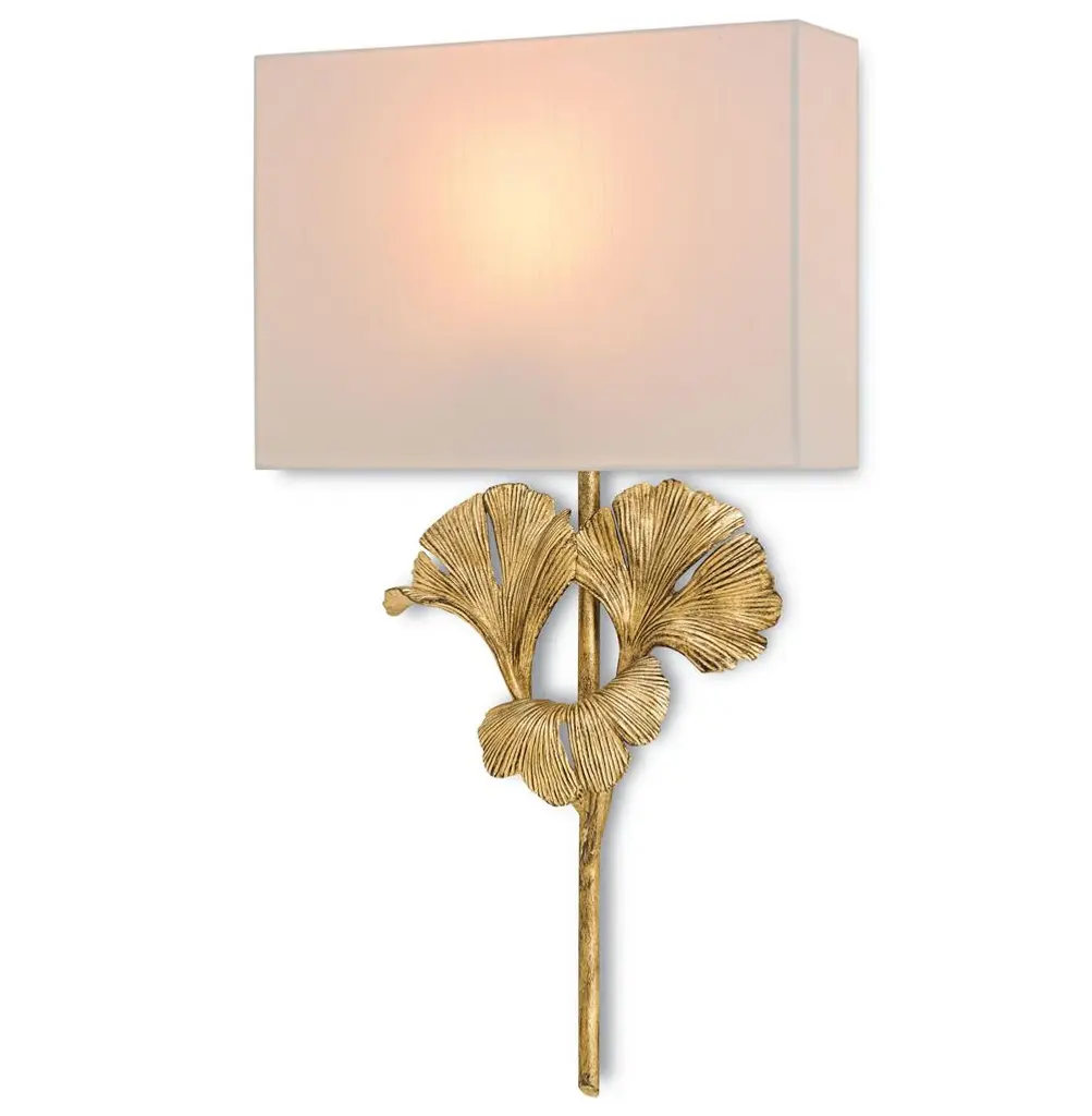 Bring a perennial presence to your home décor with the Gingko Rectangular Wall Sconce from Currey & Company. This botanical-inspired fixture is crafted with a wrought iron body that takes the form of its namesake. Its blooming motif fans out from a slender vertical stem that extends from below a rectangular shade made of off-white shantung. Its incandescent lamping is filtered through the shade to create a lively, inviting glow.