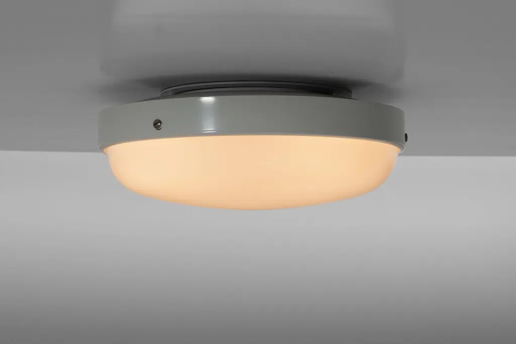 Modernist Model 3001/40 ceiling lamps designed by Gino Sarfatti and manufactured by Arteluce in Italy in 1950. Nice minimal design with the rounded shape and the plexiglass shade that is slightly curved. The shade is held by screws on the side of the metal frame. Gives off nice soft diffused light. This is the later version of the 3001 which was produced in the seventies and is pretty rare. Could also function as a wall lamp. These lamps are in very good original condition.Literature; Gino Sarfatti 1938-1973 selected works, page 479Arteluce original catalog, page 69Gino Sarfatti – born in Venice in 1912 and with an educational background in engineering – started designing lamps and founded the company ‘Arteluce’ (the art of lighting) in 1939. Arteluce quickly established itself as a leading actor in shaping the modern Italian architectural movement and became a meeting place and hub for many of the leading Italian mid-century designers, including Franco Albini, Gianfranco Frattini, Sergio Asti and Ico Parisi for example.Sarfatti designed over 400 lighting products and made a significant contribution to innovating lighting design by experimenting with new materials, production methodologies and light sources. In 1951, he first began to work with plexi-glass. Gino Sarfatti was the first to design a lamp that uses halogen bulbs back in 1971. Sarfatti and Arteluce received several design awards including e.g., the prestigious Compasso d’Oro in 1954 and 1955, and the Honorary Diploma at the Milan Triennale. Arteluce was sold to Flos in 1973 and took over production of many lights.These lamps are checked in our own atelier, cleaned and are suitable for use in the USA.