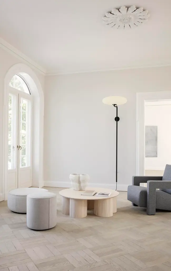 Gino Sarfatti model no. 2065 wall lamp. Designed in 1950, this is an authorized 2021 Astep/Flos re-edition by Alessandro Sarfatti, grandson of Gino Sarfatti, who applies his grandfather's scrupulous attention to detail and materials to offer a tightly curated selection of iconic lighting originally produced by Arteluce. Model 2065 consists of a diffuser made of two joined opalescent perspex saucers perched upon a long and elegantly curved black painted steel tubular structure. Its diffusers are made of recycled and recyclable Green Cast®, maintaining the aesthetic of the original methacrylate while ensuring respect for the environment. The simplicity of Gino Sarfatti’s elliptical design and the lightness of the materials make for a seemingly weightless wall lamp. An iconic example of Sarfatti's innovative and experimental approach. Price is per item. Available in unlimited quantities in this hardwired version as well as a wall mounted plug-in version with switch on the cable. Accommodates 5x 60W equivalent candelabra LED bulbs (dimmable). Not UL Listed. Seller can provide a recommendation to authorized 3rd party vendors if needed. Please note that these are unused new in box with professionally modified European wiring for US compatibility, but not under factory warranty. Made to order.