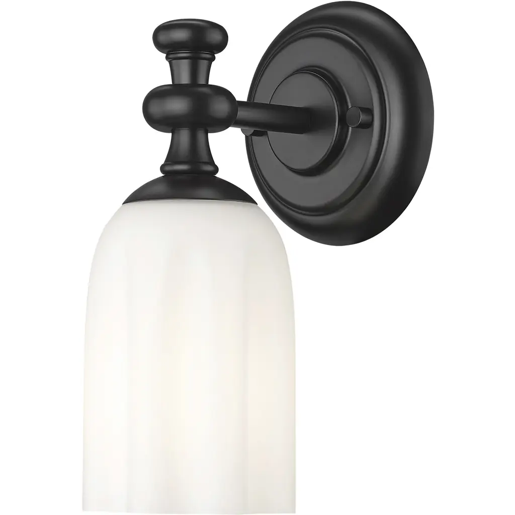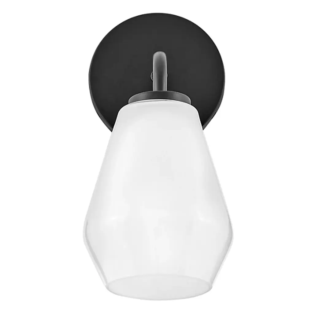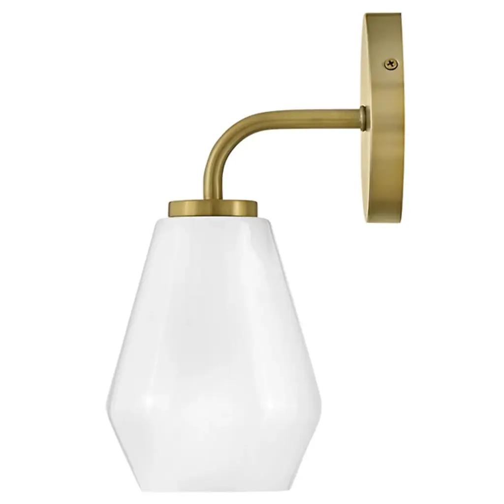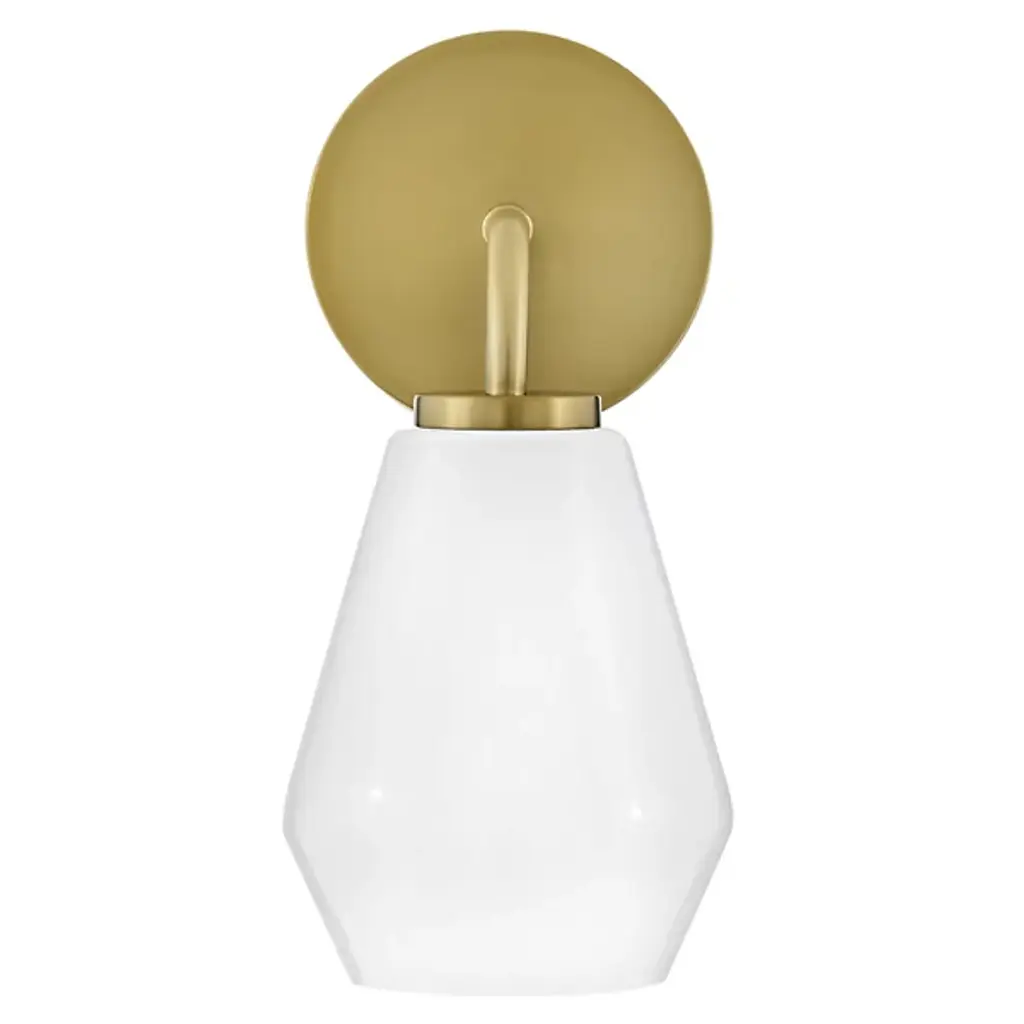 The Gio Wall Sconce from Lark is crafted from durable steel. This sloped-ceiling adaptable wall sconce features a design that allows for mounting either facing up or down, providing flexibility in tailoring the lighting to your preferences. The shade of cased opal glass adds a mid-century modern touch while emitting an inviting glow. Supported by a curved arm secured by a round backplate at your wall, Gio can be dimmed when you pair it with a separately sold ELV dimmer.