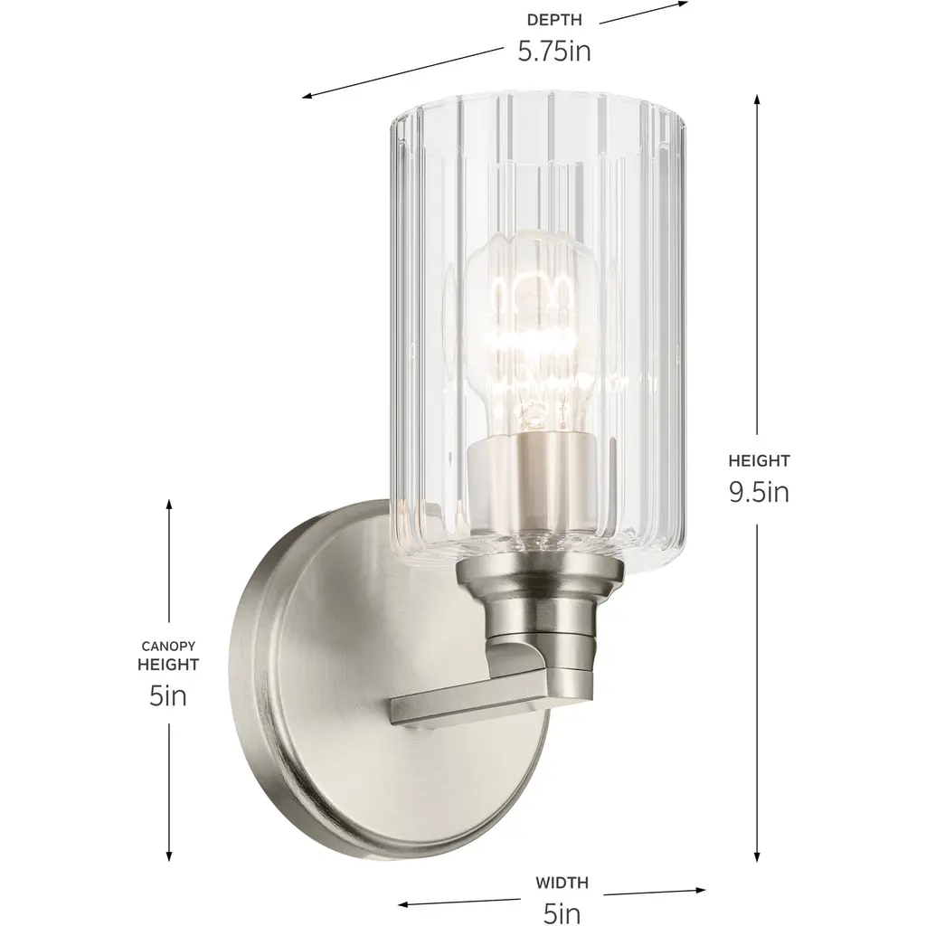 It works well alone. It plays well with others The Gioe 1-light wall sconce is versatile to the core. It blends clean lines, familiar geometries and subtle curves to whatever space it occupies and its clear fluted glass provides ambient lighting to the entire room.