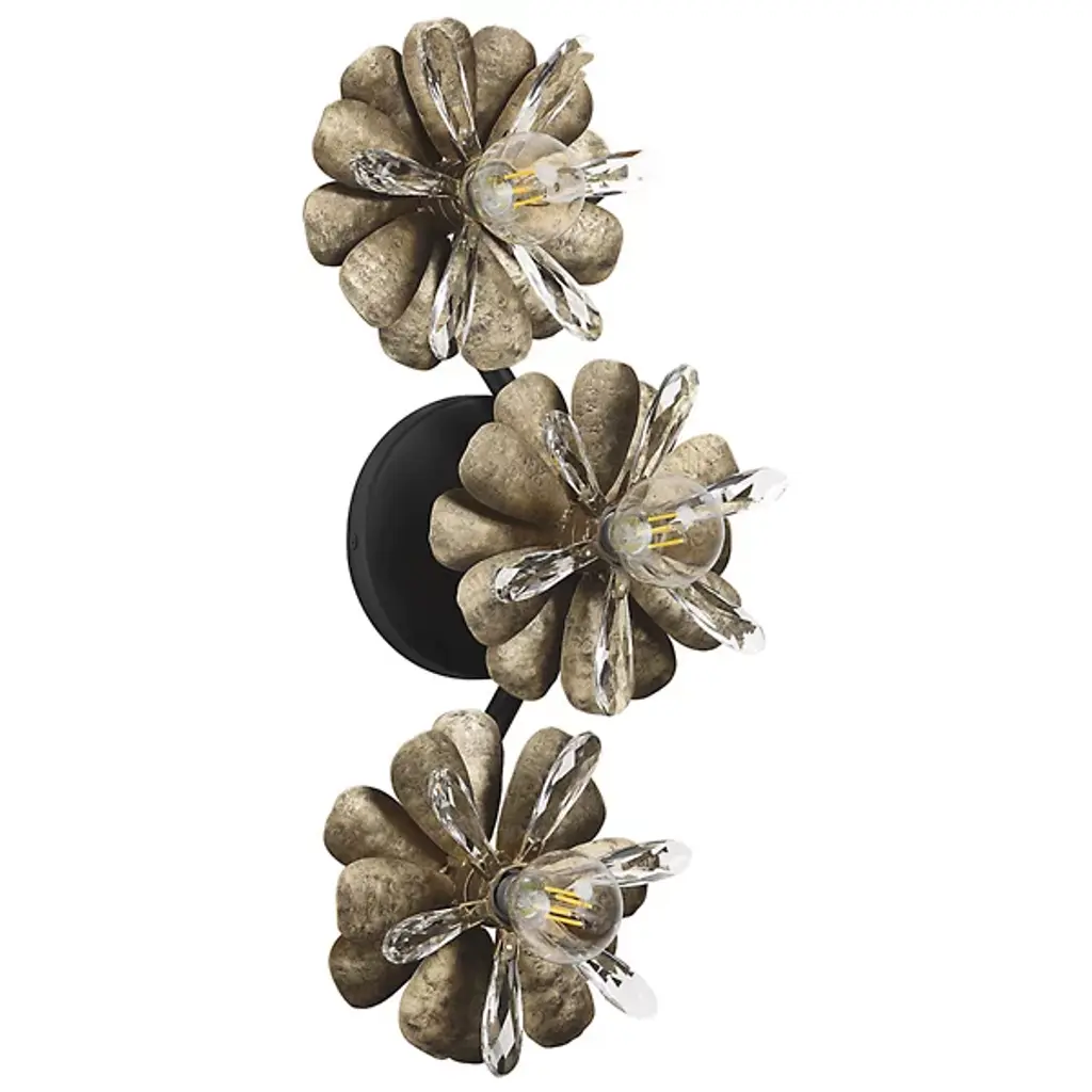 The Giselle Wall Sconce from Savoy House is a botanical dream that comes to life. Visualize a secret garden where metal flowers bloom eternally, their petals kissed by starlight. This enchanting trio of blossoms cascades down your wall, each center illuminated by a twinkling bulb. The sconce’s crystal accents catch the light like morning dew. This fixture transforms a room into a whimsical wonderland where nature and artistry intertwine in illuminated harmony.