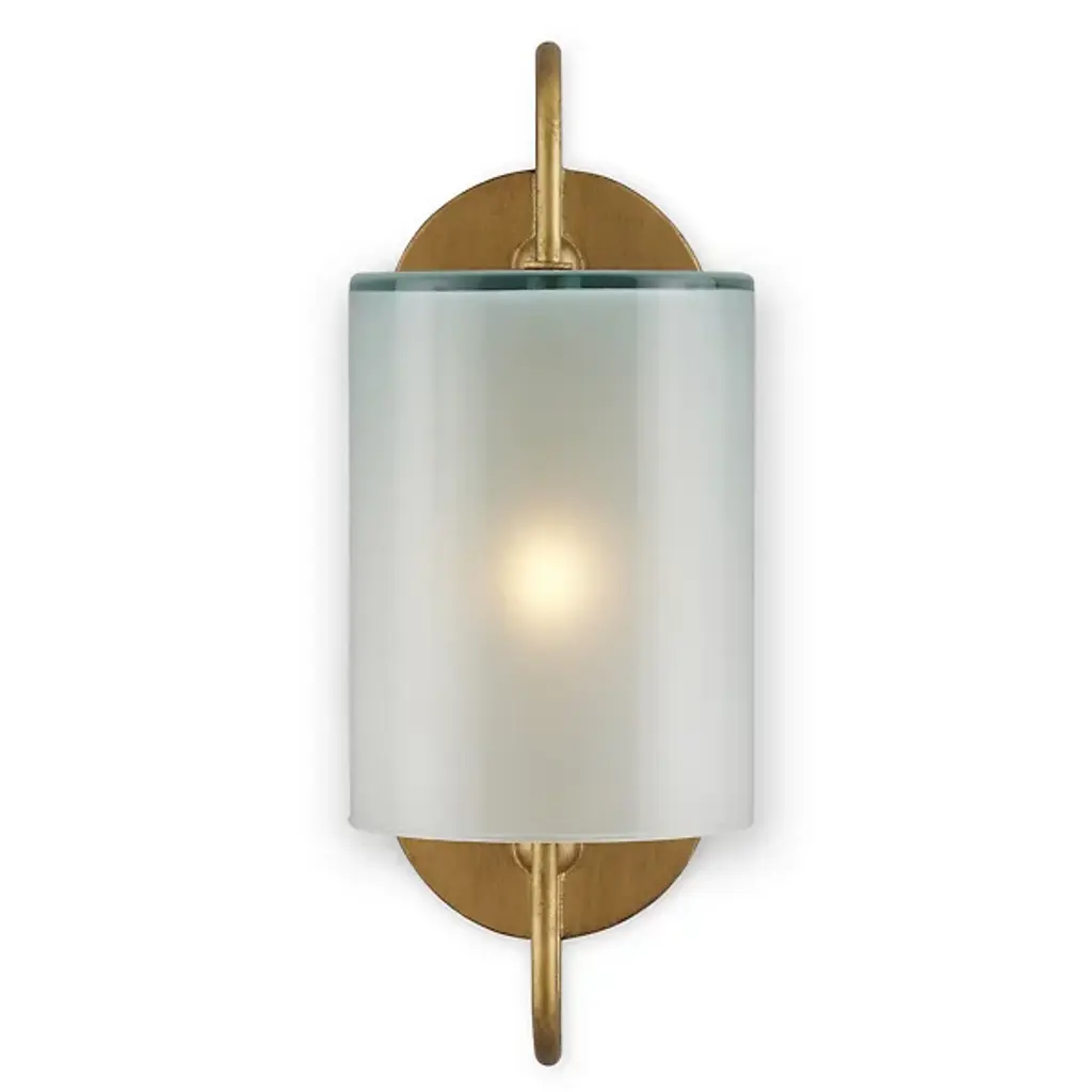 Effortlessly chic, the Currey and Company Glacier Wall Sconce features an icy piece of glass against a metallic backplate. The frosted glass evenly distributes the single lamp's illumination, filling the space with a modern yet sophisticated look.