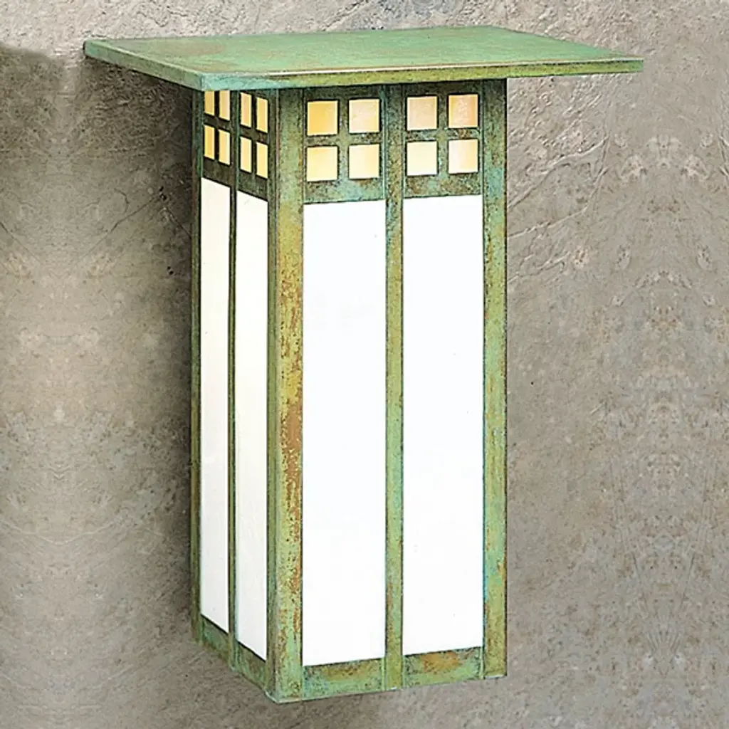 A Japanese influenced fixture, the Arroyo Craftsman Glasgow GW Outdoor Wall Sconce incorporates designs by C.R. Mackintosh for a contemporary yet traditional Arts and Crafts look. Available in a number of organic finish options and handmade glass styles.