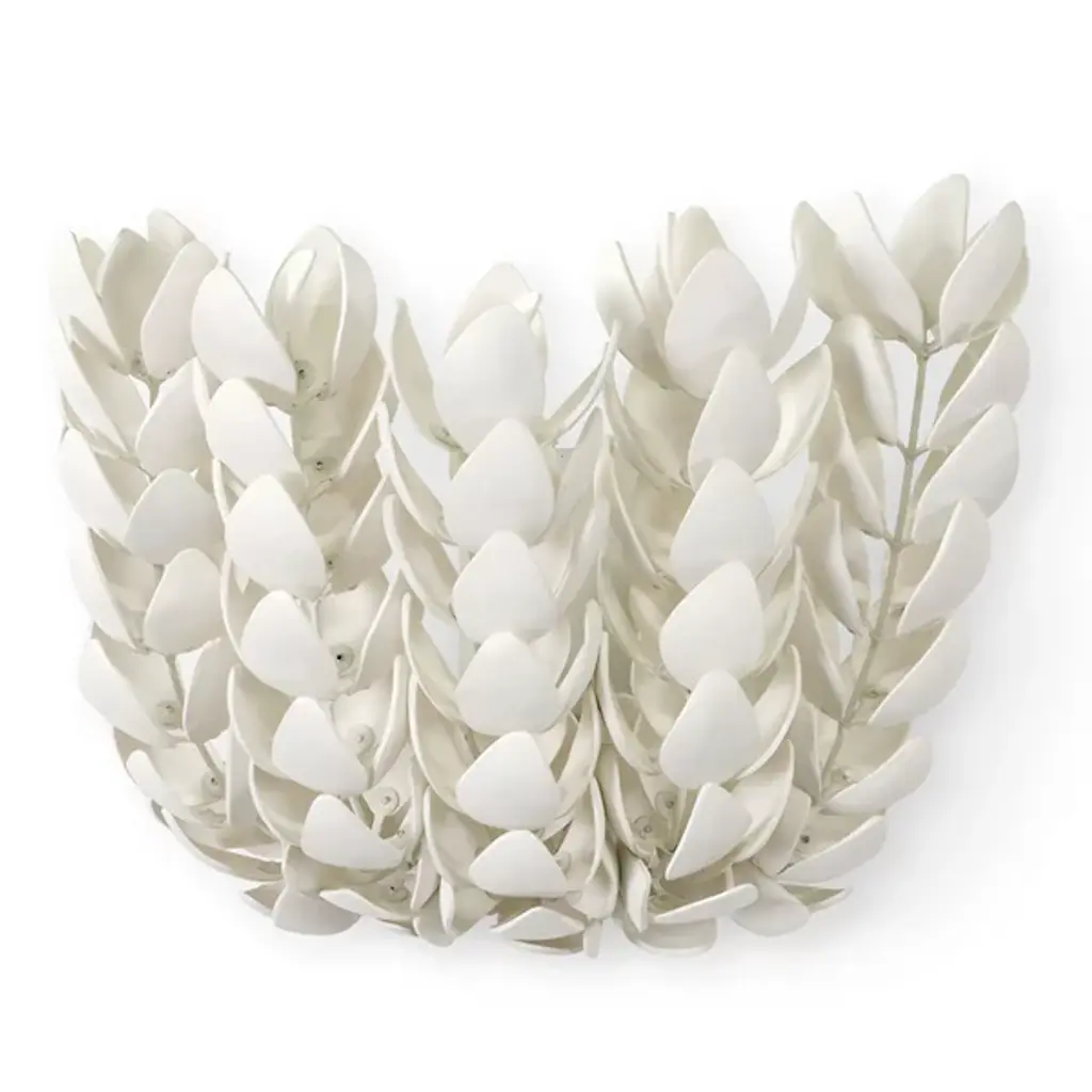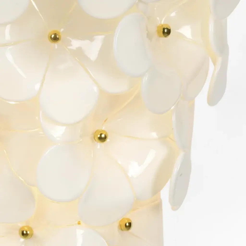 The Glass Flower Wall Sconce from Chelsea House arranges translucent petals in a three-dimensional bouquet against the wall. Each handcrafted glass bloom catches and diffuses light differently, creating varied luminosity across the fixture. Tiny metallic centers anchor each flower, providing subtle contrast to the milky glass petals. This sconce transforms into a botanical study in light and shadow when illuminated. The layered flowers create depth that ordinary wall fixtures lack, making this piece particularly effective in neutral spaces needing dimensional interest. Each petal's subtle variations in thickness affect how light passes through, resulting in a complex play of brightness.