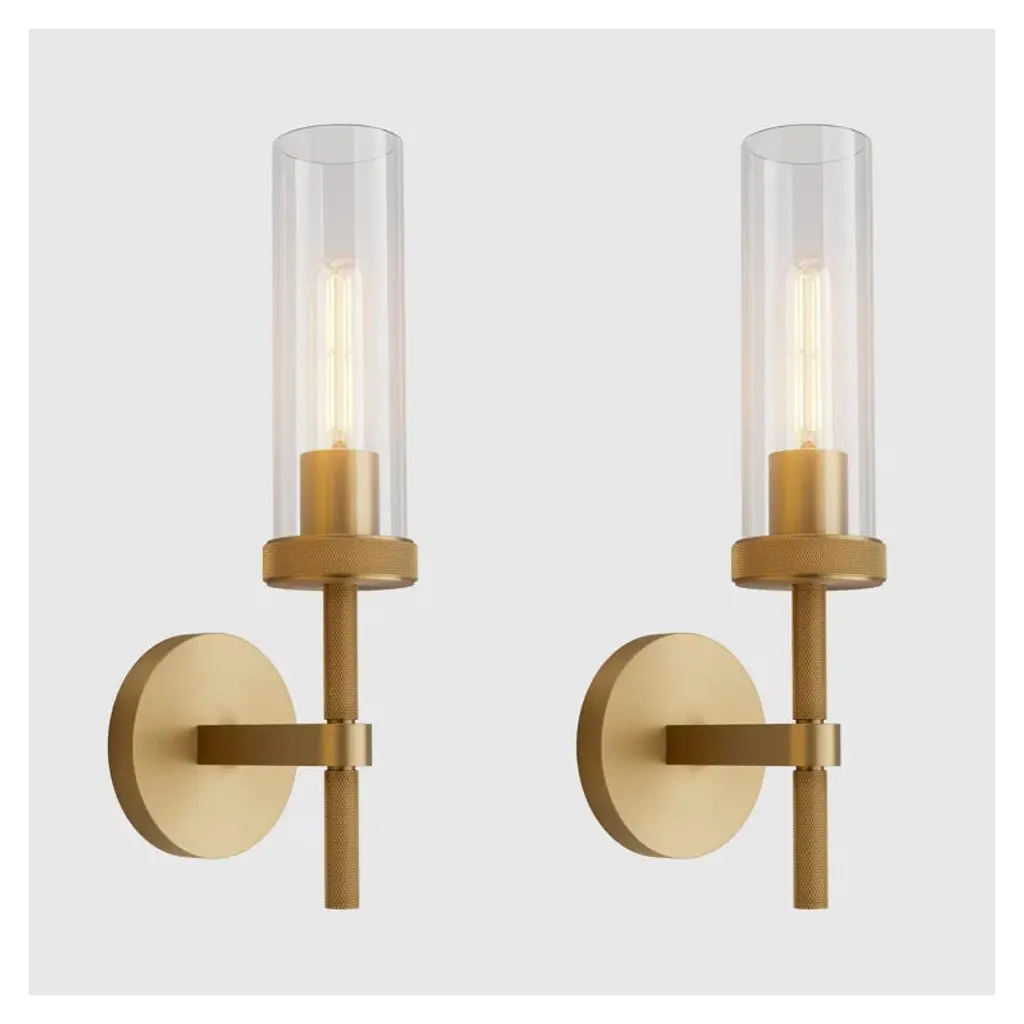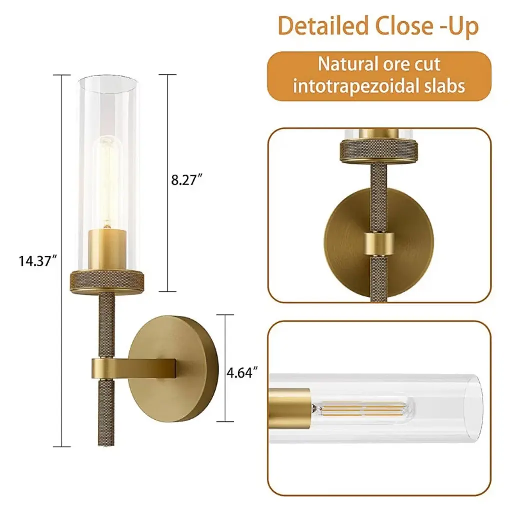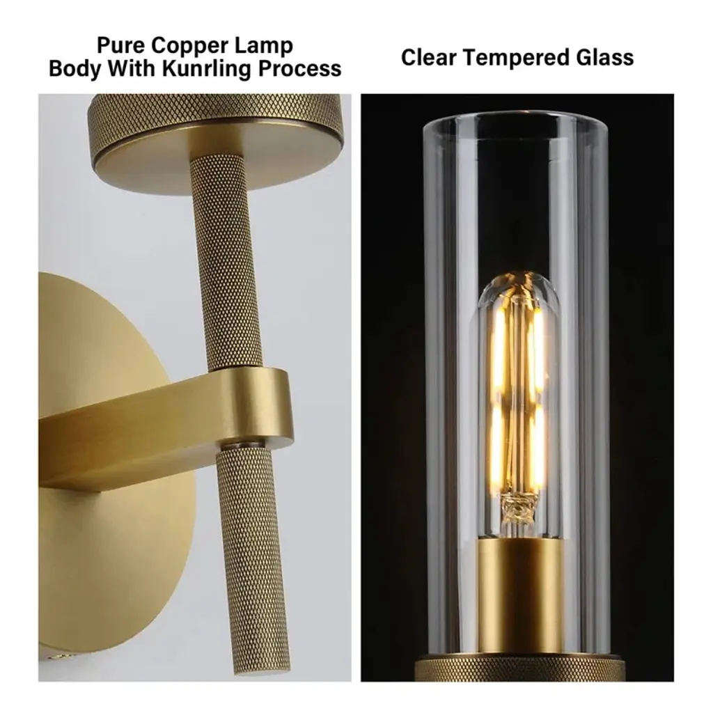Glass Tube Wall Sconces, Solid Copper Base Sconces Wall Lighting (Set Of 2) Brass