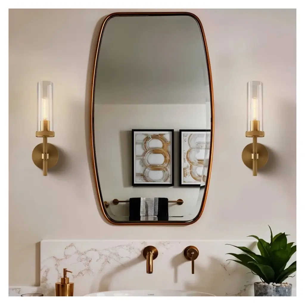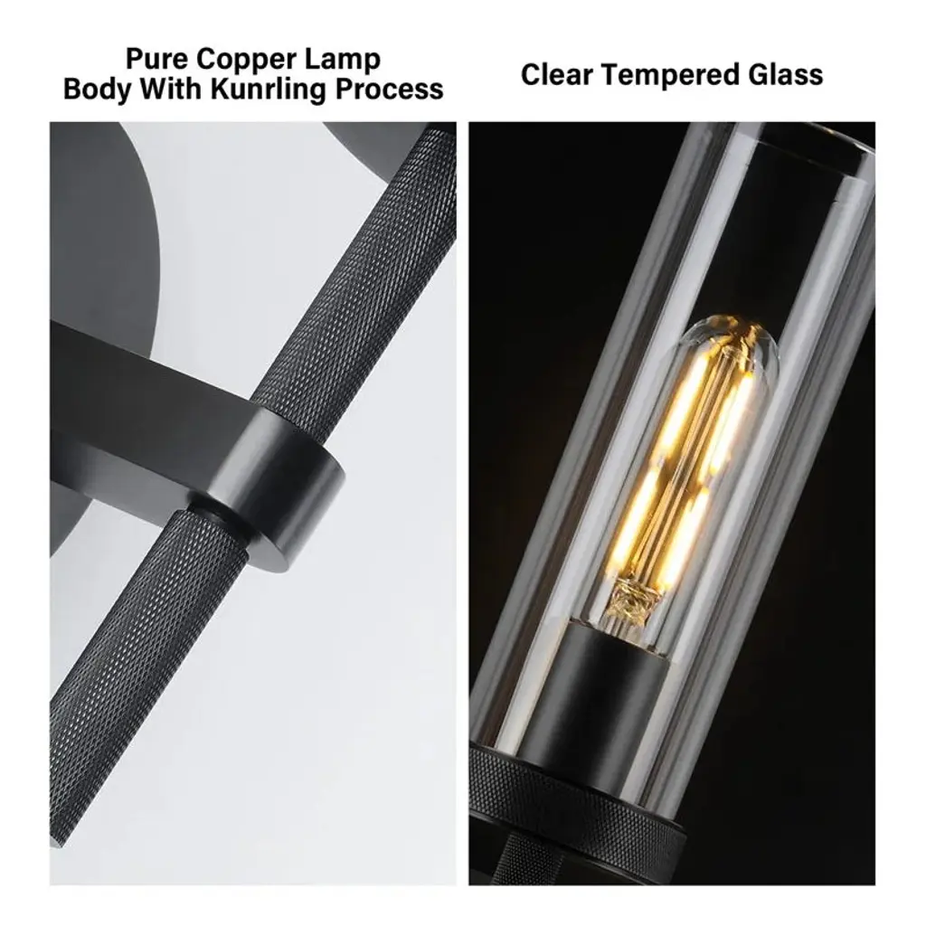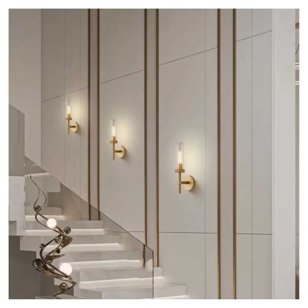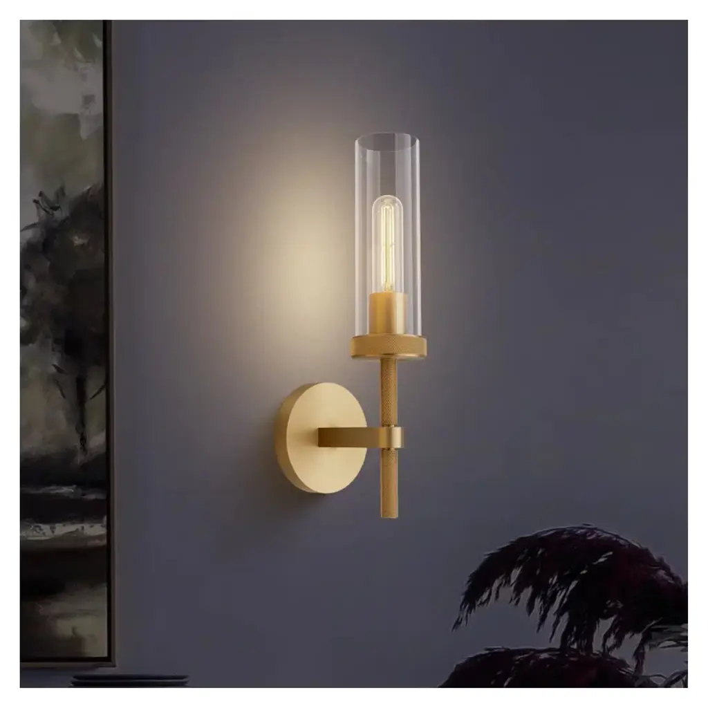 Glass Tube Wall Sconces, Solid Copper Base Sconces Wall Lighting (Set Of 2) Brass