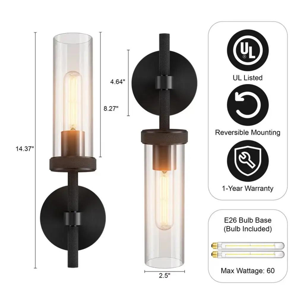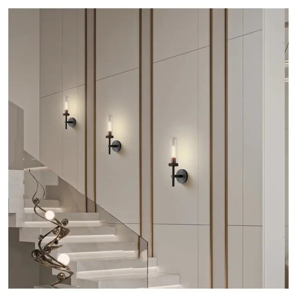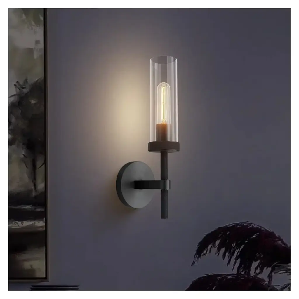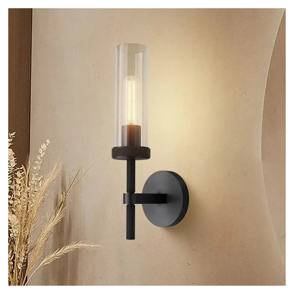 This sleek wall sconce blends modern minimalism with timeless elegance. Featuring a cylindrical glass shade and a finely textured metal body, it offers a refined look suitable for hallways, bedrooms, bathrooms, or living areas. The design provides focused illumination while enhancing ambient light, making it both a functional and decorative addition to any interior. Easy to install and compatible with standard bulbs, it’s an ideal choice for those seeking understated sophistication.