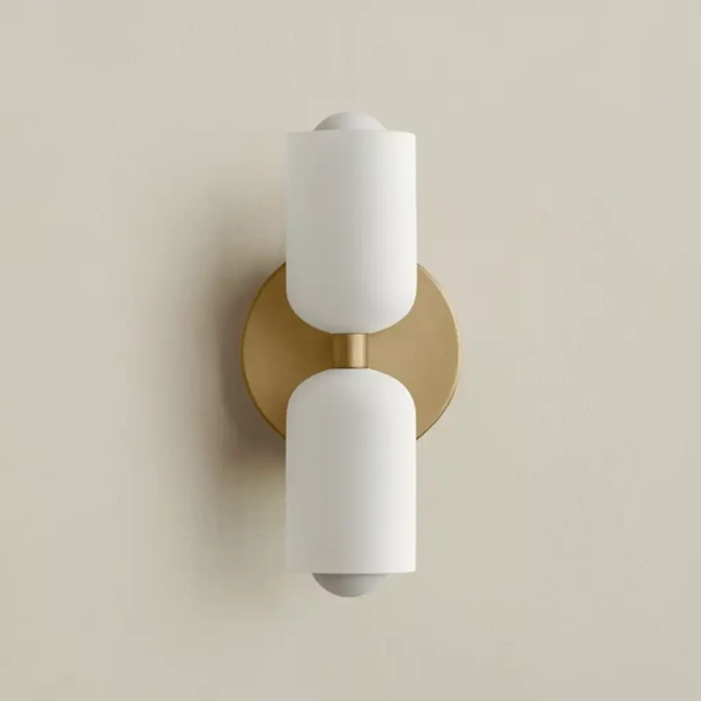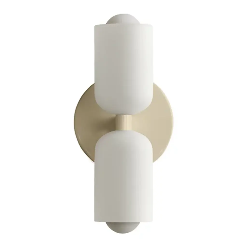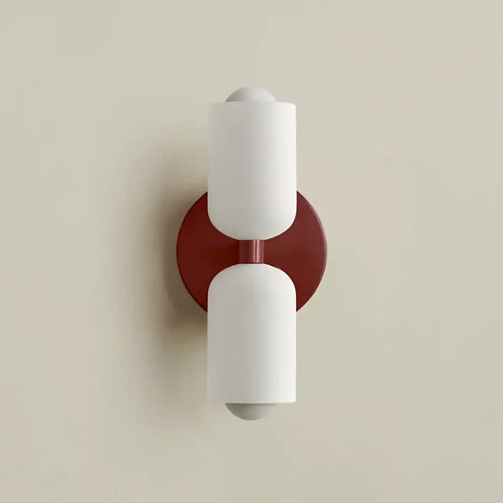 The Glass Up Down Sconce, Slim by In Common With presents a sleek and ADA-compliant alternative to the standard sconce, featuring a shorter backplate for a snug fit against the wall. With adaptability at the core of its design, the fixture's twin shades in your chosen jewel-like finish. It emits bi-directional light and is available in various styles and materials. Hand-assembled in a Brooklyn studio, each piece is unique, adding to its allure. The steel structure and damp-listed lamping offer both durability and elegance, while each fixture presents its own subtle character to the world.