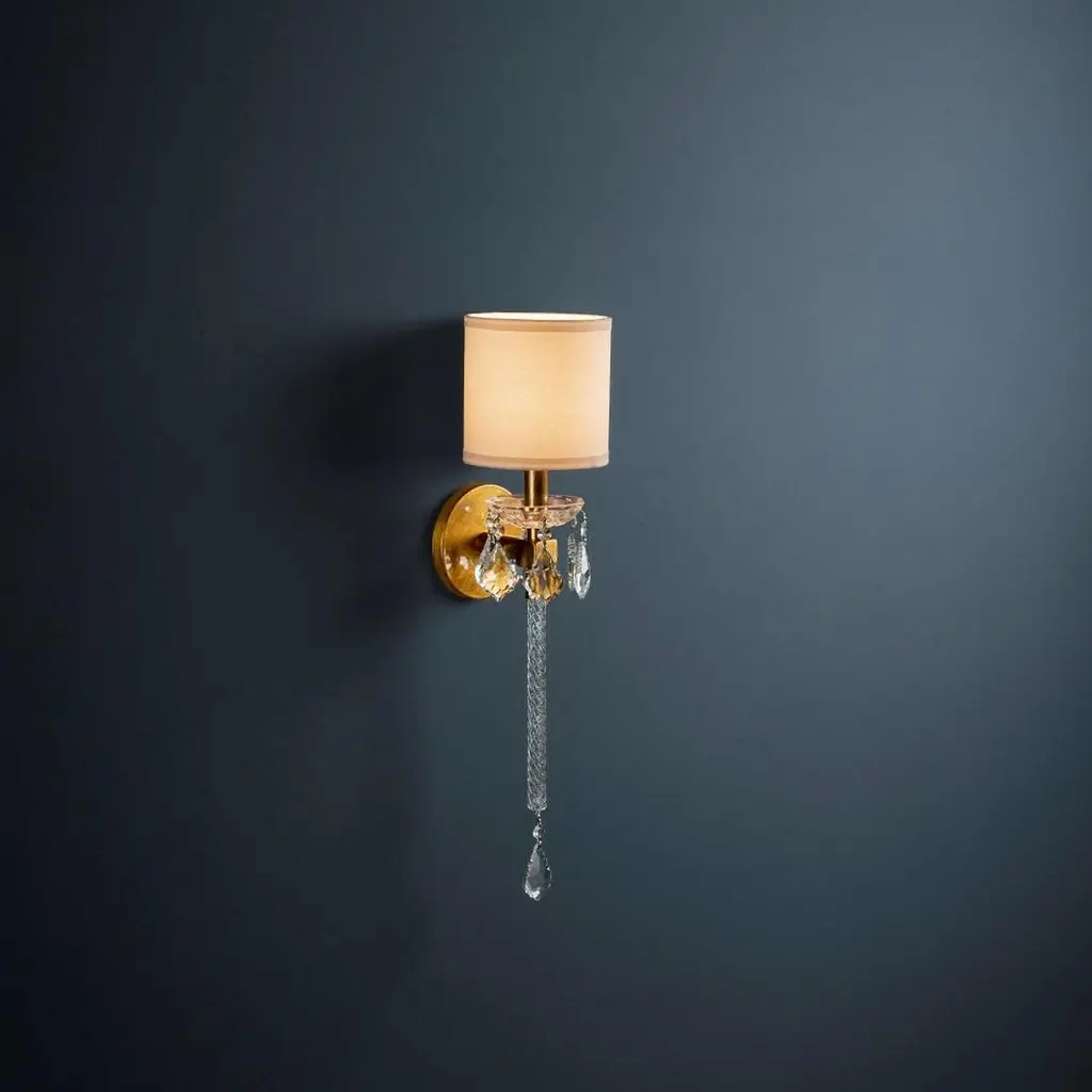 Glass Wall LIght by AverDimensions: W 15 x D 15 x H 57 cmMaterials: Natural rocks, high-quality cut crystals, jewelry chains, hand blown glass, other.Aver Design offers a possibility to really differentiate an interior project through decorative lighting. Our pieces are striking and timeless, they remain elegant regardless of the “trend” that in a short time will already be saturated and without personality.All our lamps can be wired according to each country. If sold to the USA it will be wired for the USA for instance.