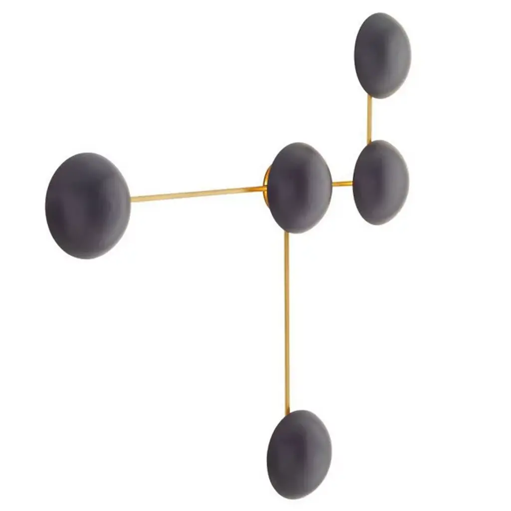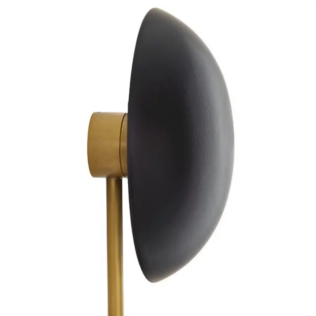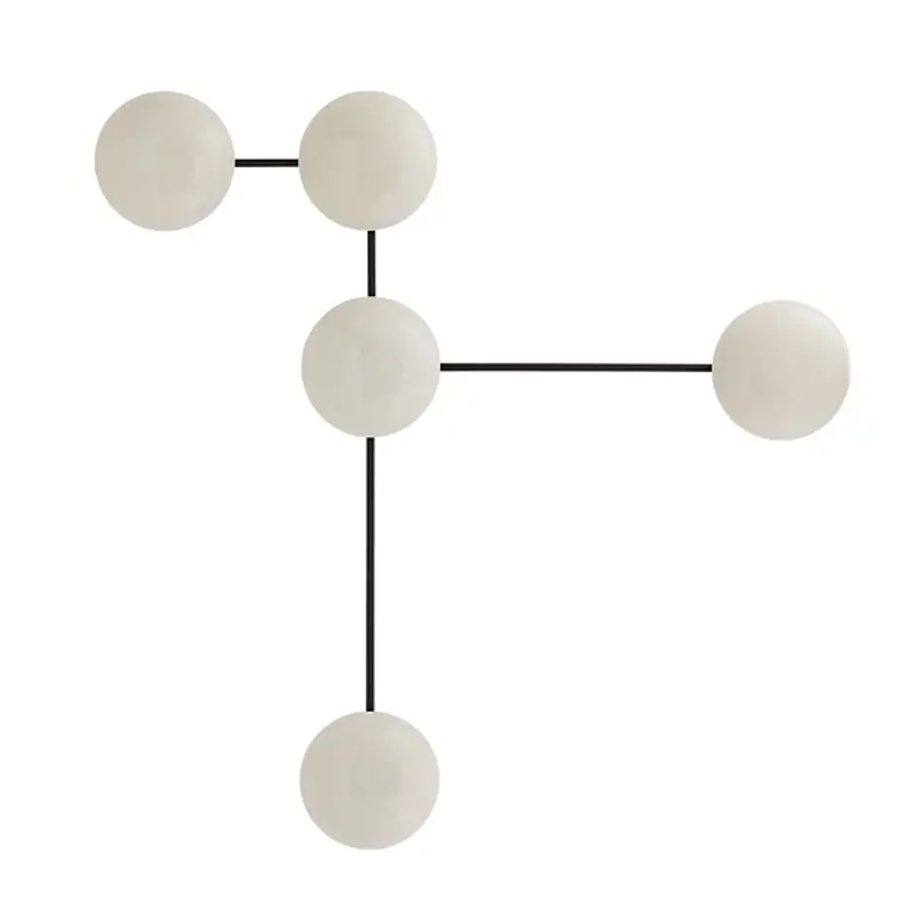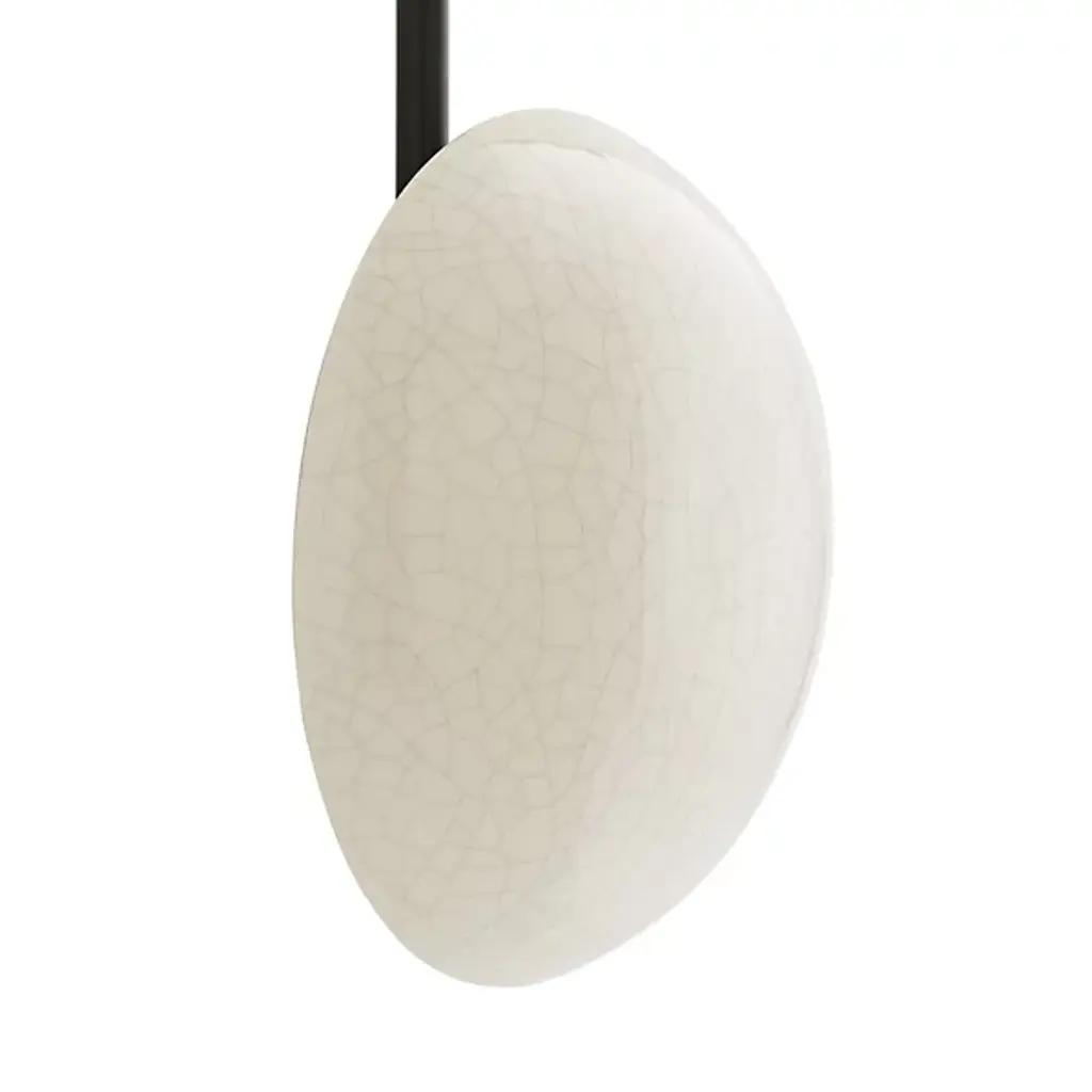 Let your eyes connect the charming dots of the Glaze Sculptural Wall Sconce from Arteriors. Even if you never turn on its lights, this piece still delivers an intriguing silhouette. It suggests modern sculpture as it sprawls across your wall with a network of clean metal lines. The sharp angles of the lines make for an eye-catching pair with the round domes of the shades. Made from ceramic, the shades recall traditional arts as it displays a reflective surface filled with crackled details. Light paints the domes and the wall behind a soft golden hue. The backward casting light enhances the overall silhouette and creates a comfortable ambient aura.