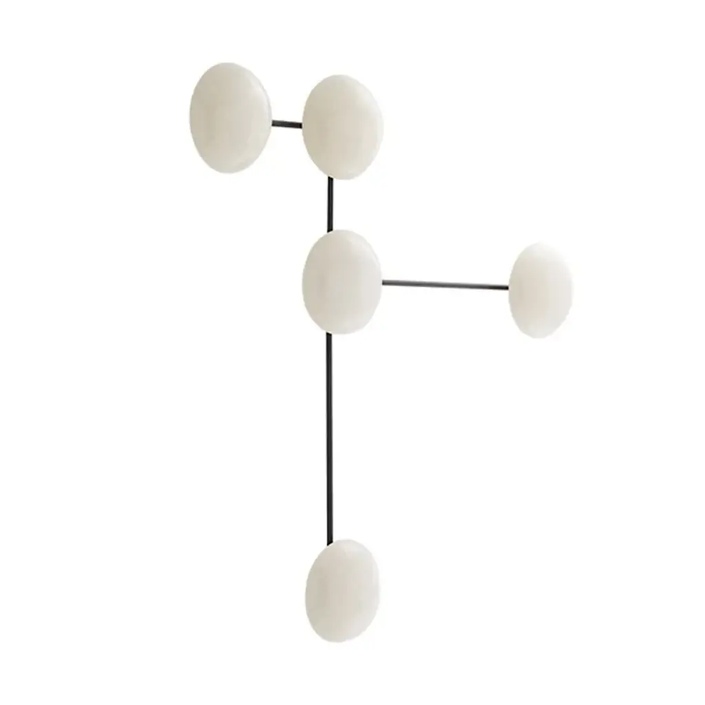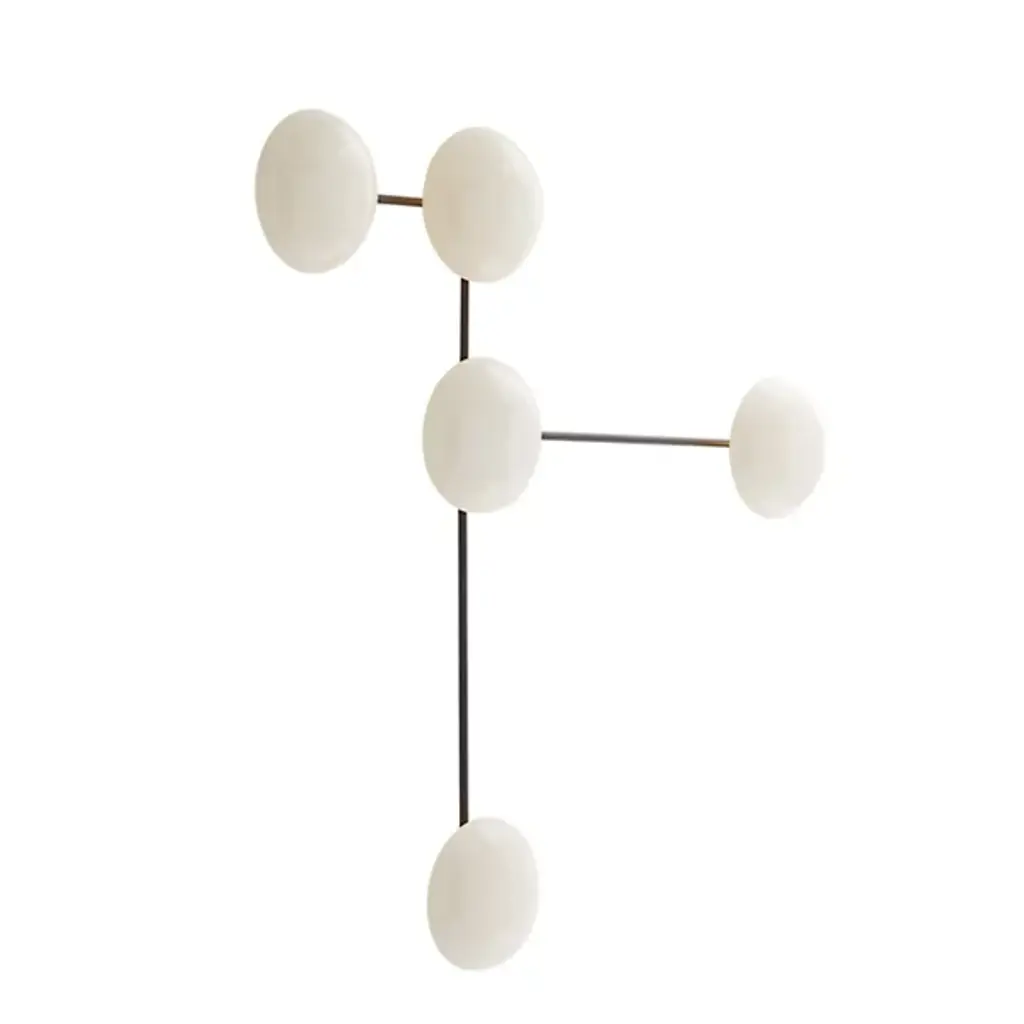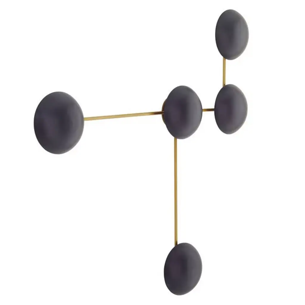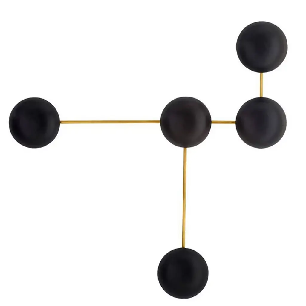 Let your eyes connect the charming dots of the Glaze Sculptural Wall Sconce from Arteriors. Even if you never turn on its lights, this piece still delivers an intriguing silhouette. It suggests modern sculpture as it sprawls across your wall with a network of clean metal lines. The sharp angles of the lines make for an eye-catching pair with the round domes of the shades. Made from ceramic, the shades recall traditional arts as it displays a reflective surface filled with crackled details. Light paints the domes and the wall behind a soft golden hue. The backward casting light enhances the overall silhouette and creates a comfortable ambient aura.
