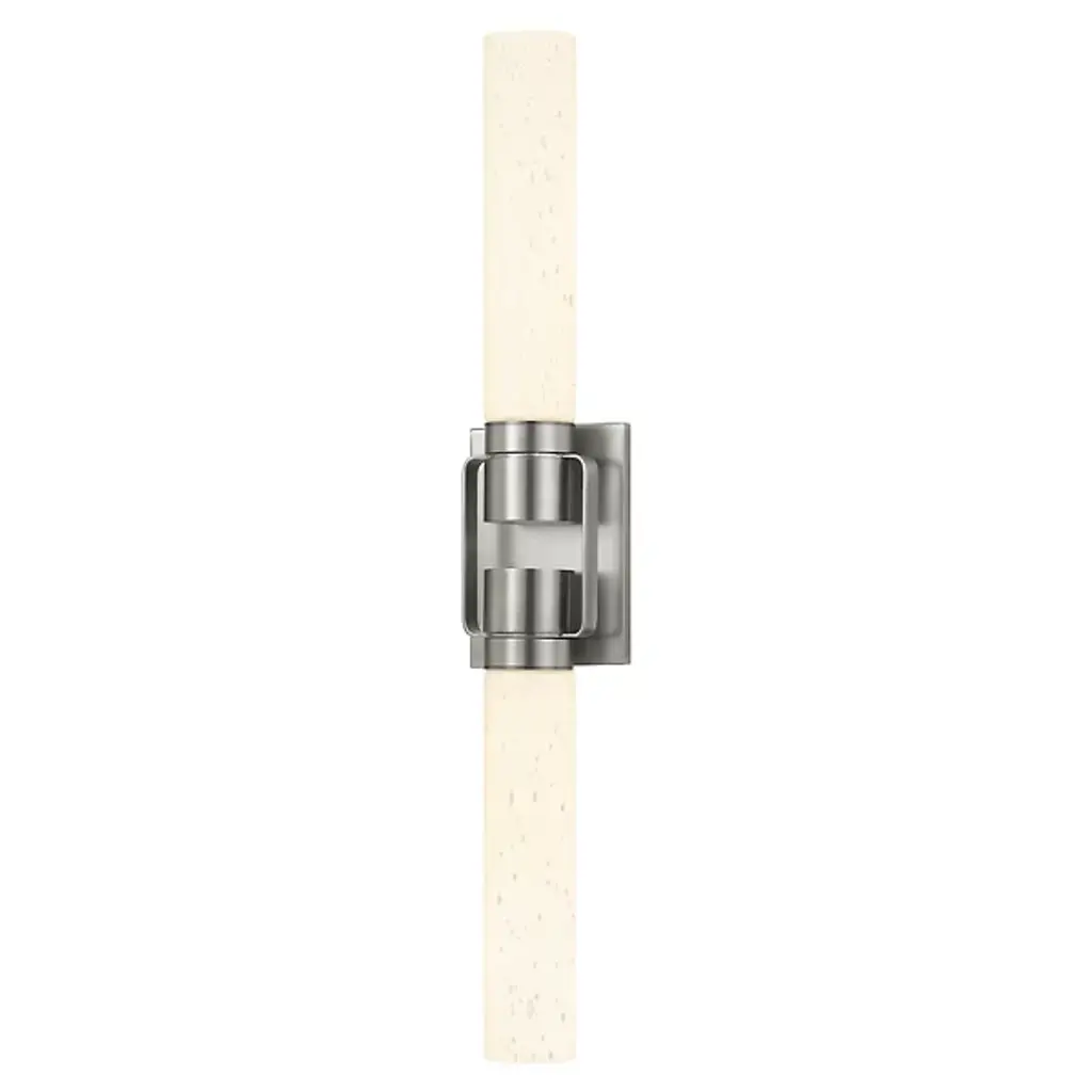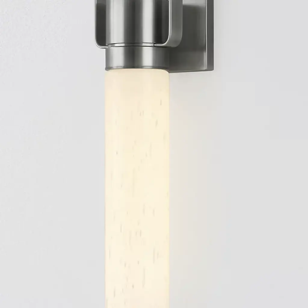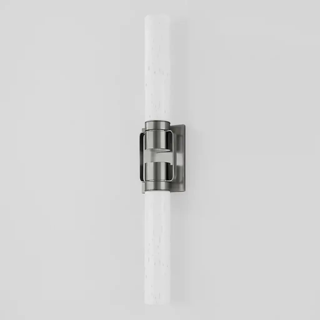 The Glen Oaks Wall Sconce from Hudson Valley Lighting pairs practical design with smart engineering. Two seedy opal glass cylinders mount to a slim backplate, connected by thin steel straps that add industrial charm. Once lit, the light filters through the textured glass, creating subtle patterns on nearby walls. Works well in pairs flanking mirrors or as single accents in hallways, bringing a charming, workshop-inspired look wherever it is placed.