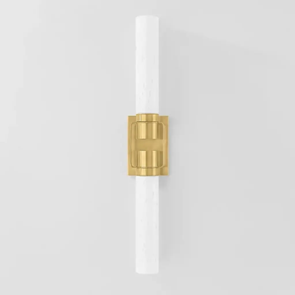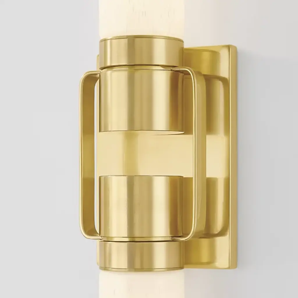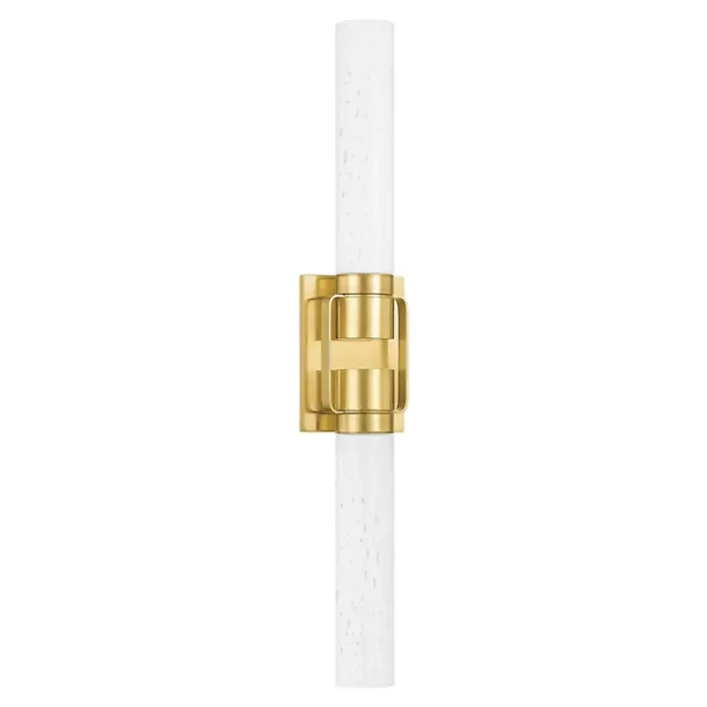 The Glen Oaks Wall Sconce from Hudson Valley Lighting pairs practical design with smart engineering. Two seedy opal glass cylinders mount to a slim backplate, connected by thin steel straps that add industrial charm. Once lit, the light filters through the textured glass, creating subtle patterns on nearby walls. Works well in pairs flanking mirrors or as single accents in hallways, bringing a charming, workshop-inspired look wherever it is placed.