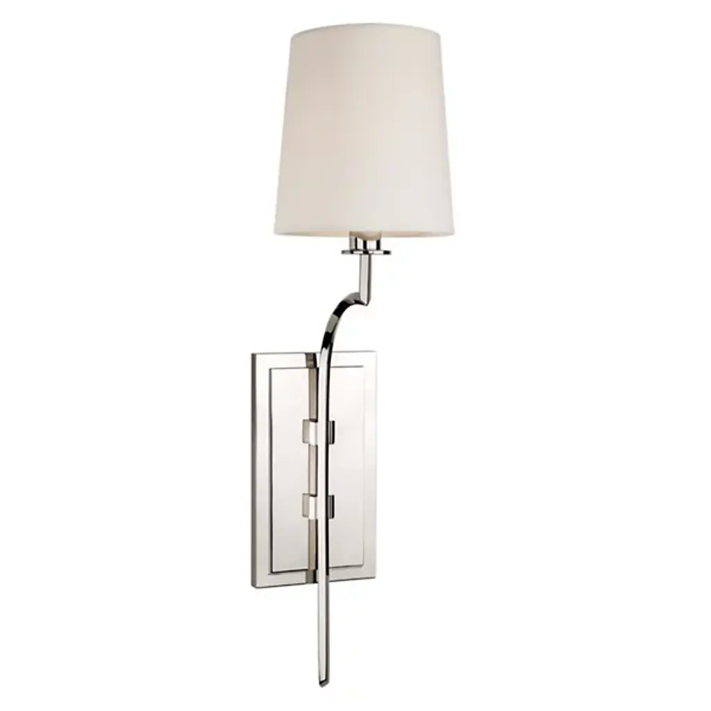 A modern classic fit for any home. The Glenford Wall Sconce by Hudson Valley Lighting has a rectangular backplate with notches that hold a sweeping, vertical arm with an unexpected angular detail. This stunning fixture is made of Metal and comes topped with a Faux Silk shade that complements the simple, elegant design. This sconce will illuminate the rest of your decor and create the cozy ambiance of your dreams. Mount it in a series to light up the hallway and add some mood lighting, or flank wall decor or furniture to accent the bedroom, living room, home office or foyer.