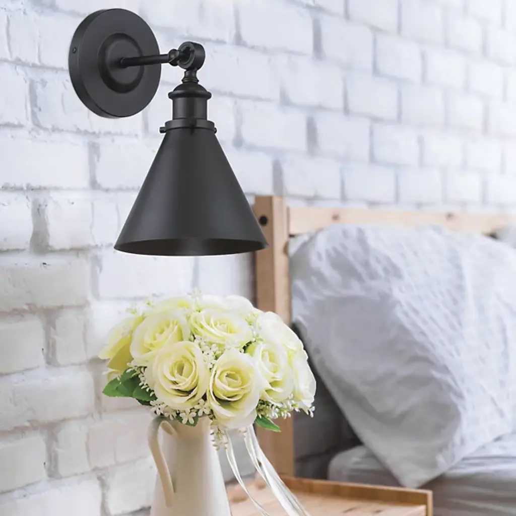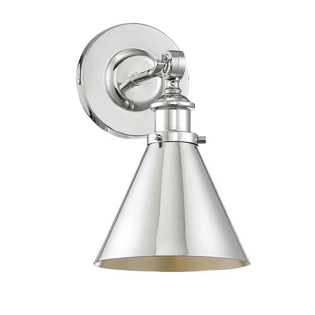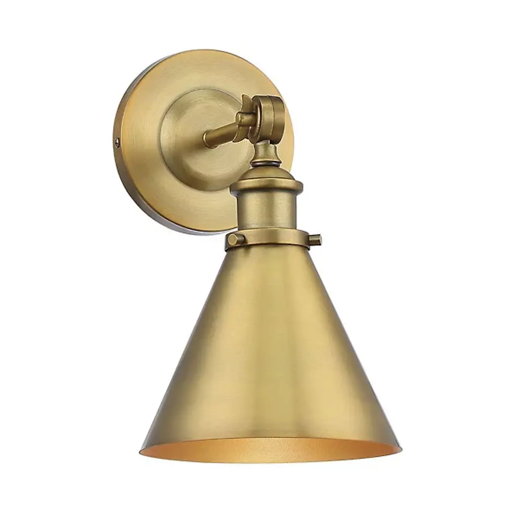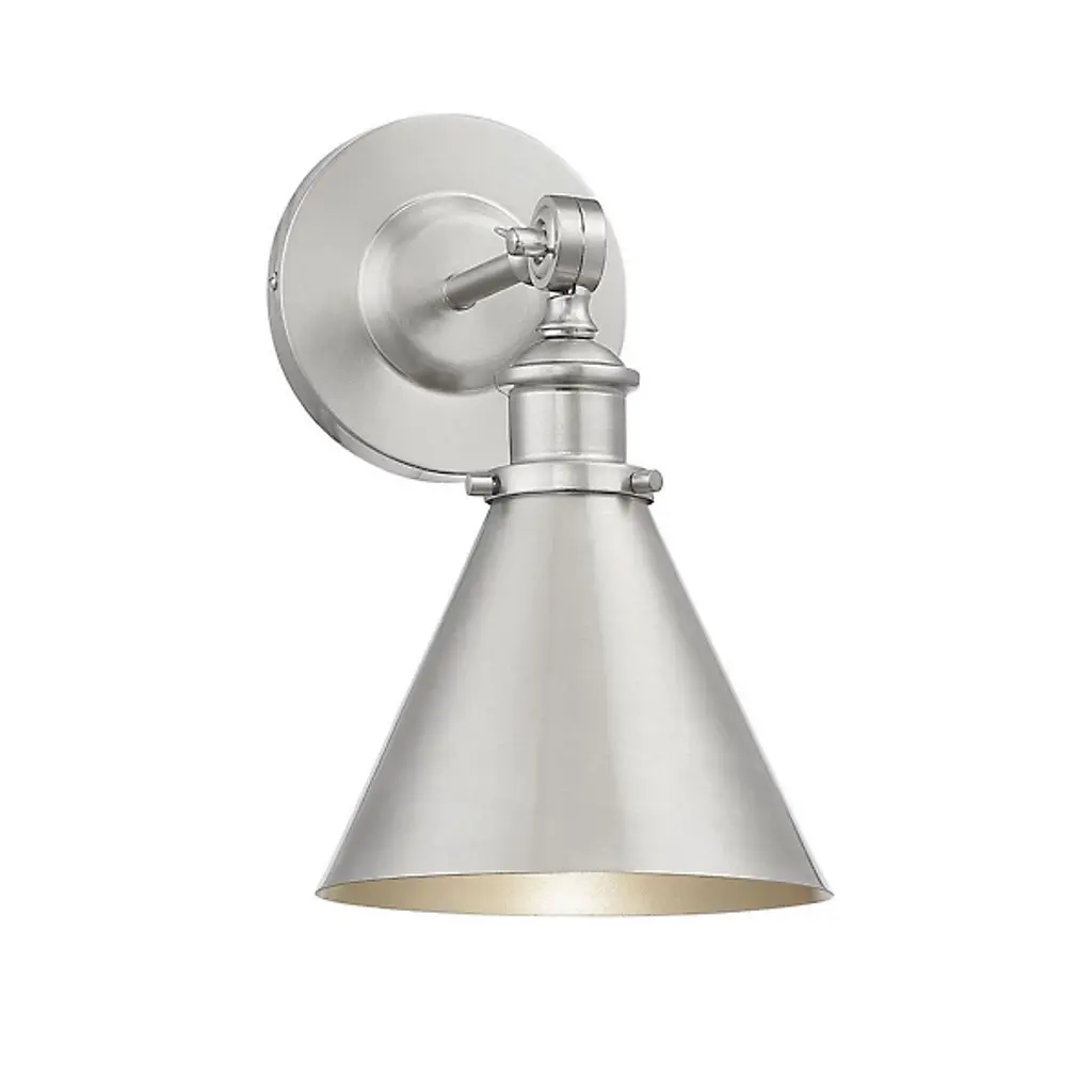 A truly transitional piece that takes the accented details of traditional lighting and blends them with the clean shape of contemporary design. The Glenn Wall Sconce from Savoy House is a handsome Metal construction accentuated by protruding details on the lamp holder and a wheel-shaped ornamental arm back. With halogen bulbs, a warm familiar glow fans out of the coned Metal shade. Oriented either up or down, the piece creates your choice of an evocative upplight or a sophisticated downlight.