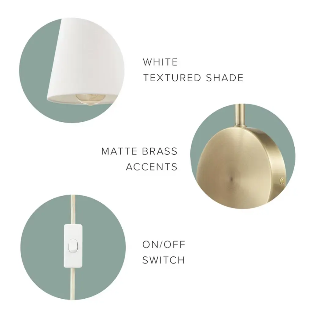 Globe Electric 1-light Matte Brass Hardwire Or Plug-in Wall Sconce With White Textured Shade By Novogratz X Globe: Etl Listed, Iron Body