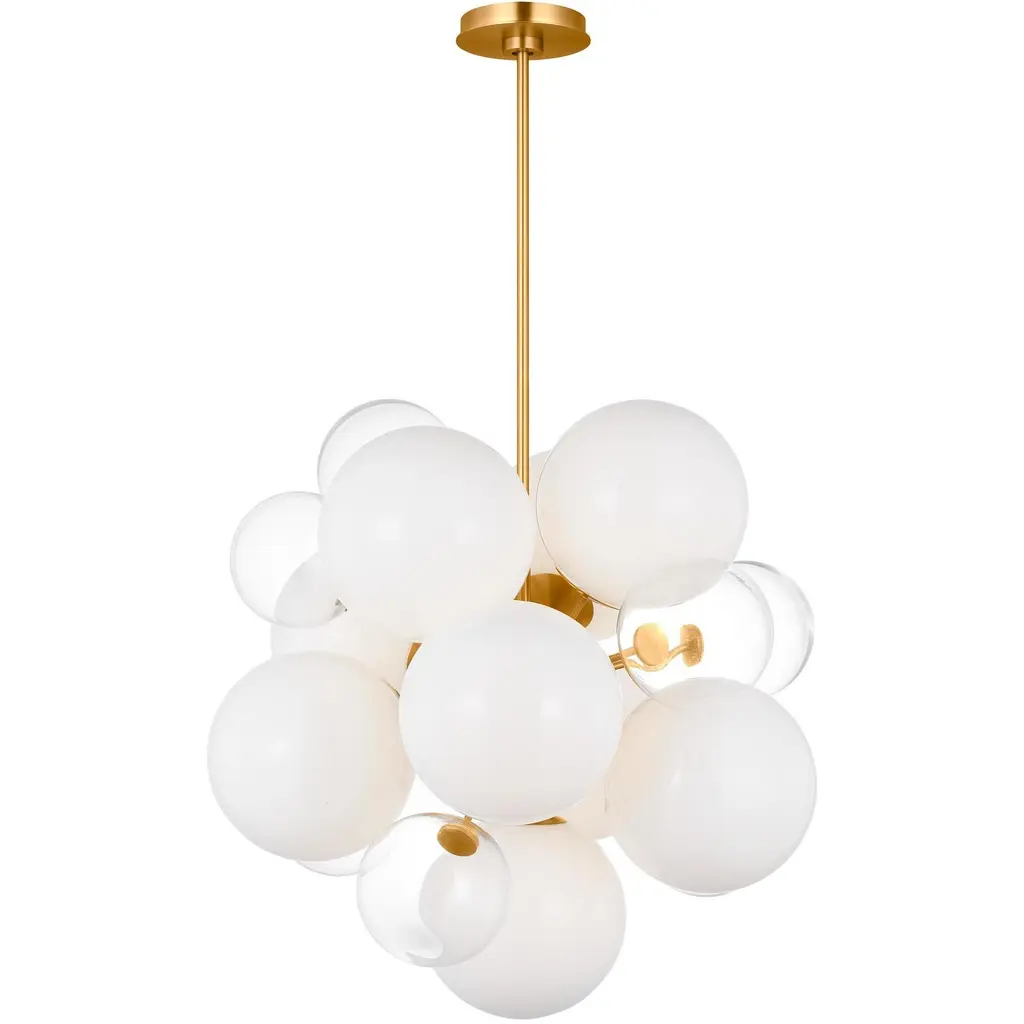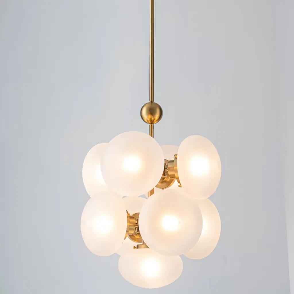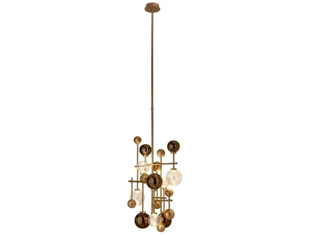 Futuristic Fantasy.Welcome to our world of dreamy, high-voltage glamour. A constellation of jewel-toned acrylic and opaque white orbs float on a brushed brass stem—luxe and luminous in a small space, out of this world flanking an entry console. Our sculptural Globo lighting resuscitates conventional interiors and adds an ultra-glam polish to swanky spaces.All lighting sales are final.