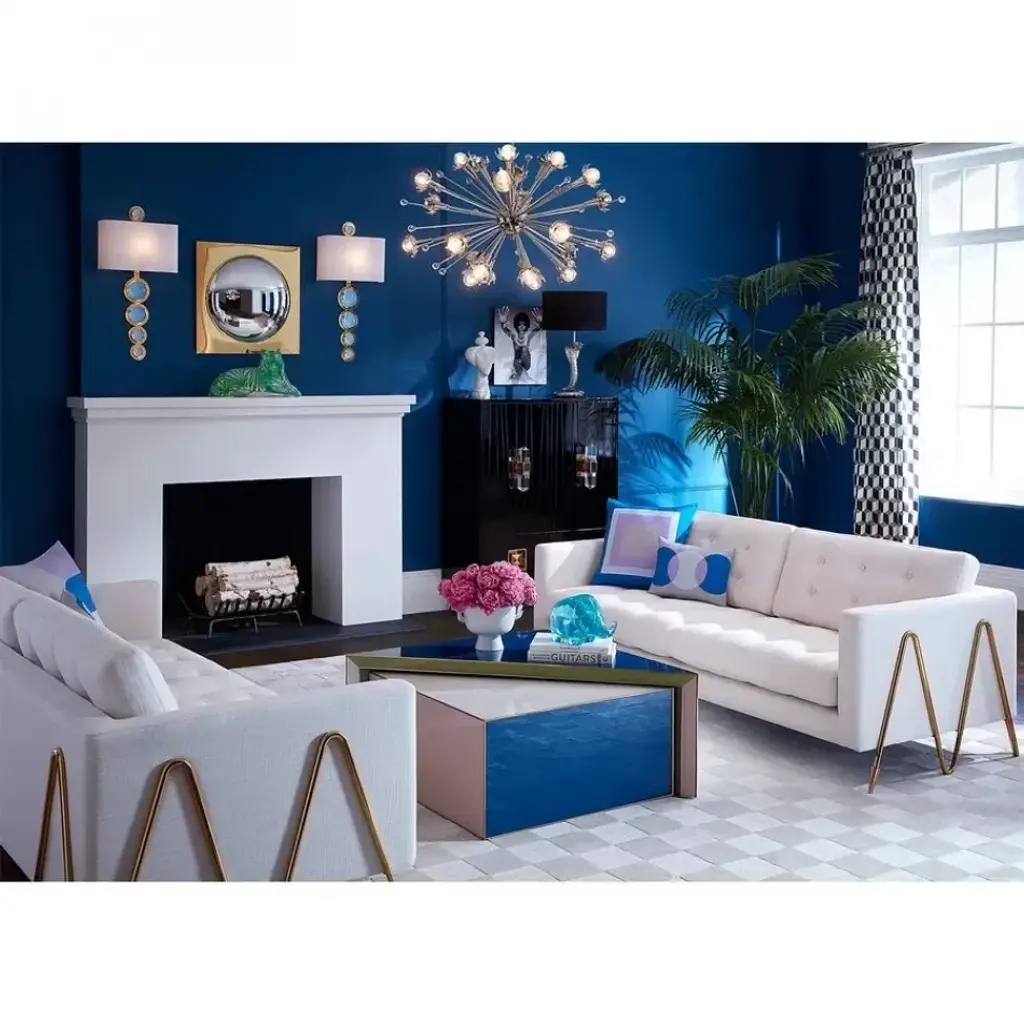 A precious jewel for your wall, our Globo Sconce features a line of luminous blue acrylic spheres set in polished brass frame and topped with a white shade. Perfect in a posh powder room or fabulous foyer, these beauties are also ultra-elegant flanking a bed.