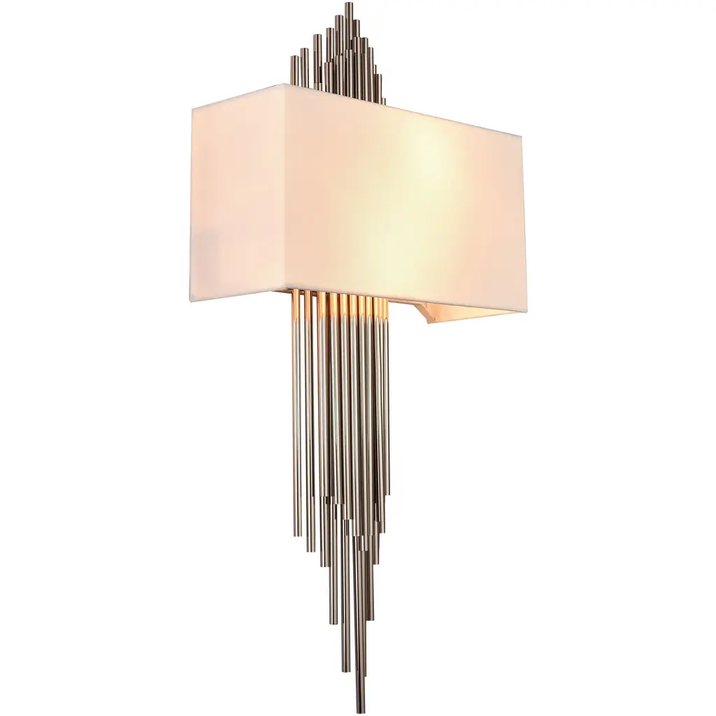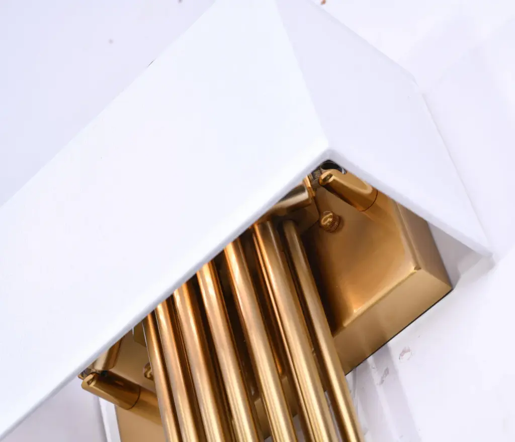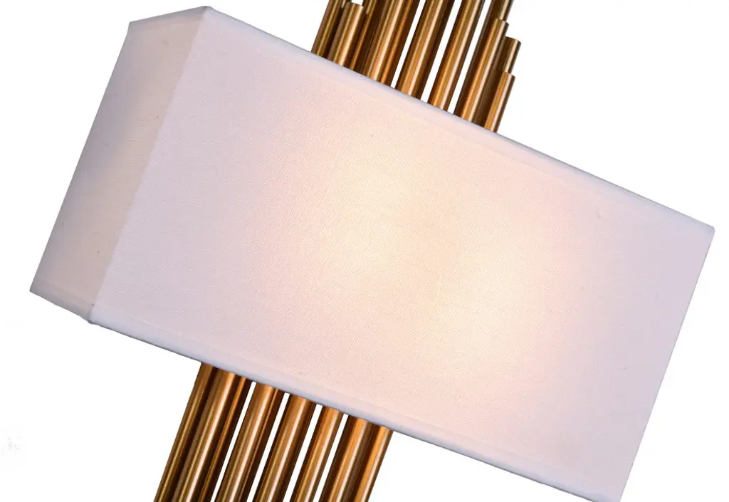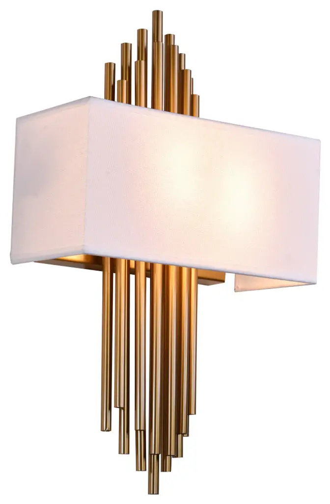 This wall sconce is in a gold finish. The frame is made out of metal, and it comes with gold metal rods and a white fabric shade. It can be used in any rooms, entryways, and more. Bulb(s) Included: No Number of Bulb(s) Required: 2 Bulb Type: G9 Max Wattage: 40
