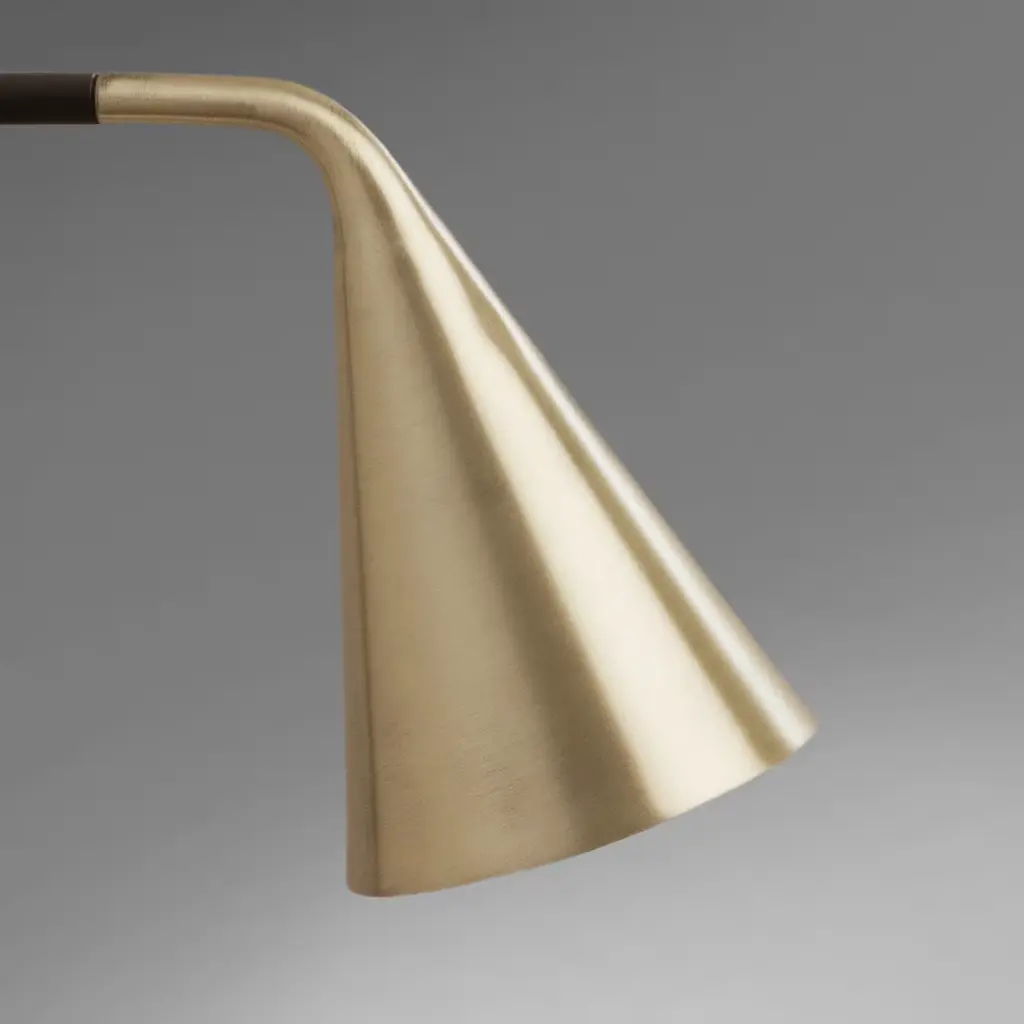A new formal and material interpretation of the conical diffuser is the main feature of Gordon lamps. The essential and refined aspect with a strong character that is conferred by the shape of the brass casting; these practical and adjustable lamps are suitable to be used in different environments. The matte black structure is complemented by a brushed brass conical diffuser.