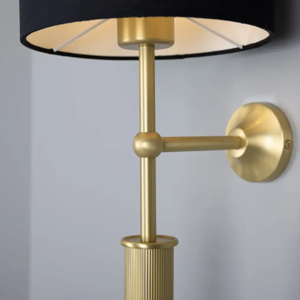 Gorey wall lightMaterial BrassProjection 22cm | 8.75Weight 0.700kgMax Wattage 40wVoltage 220/240vLampholder E27 | PlasticIP Rating IP20Wall Bracket MLWB03Shade Code MLFS002