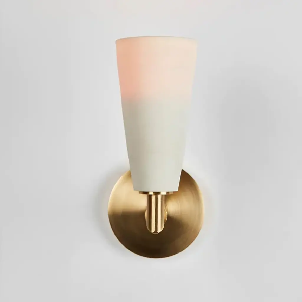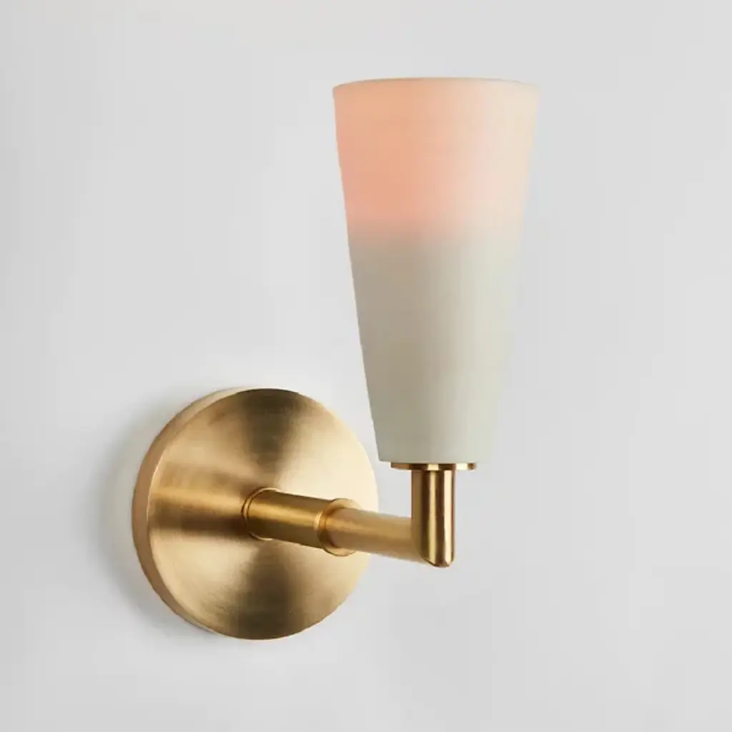 The Grace Wall Sconce from Roll & Hill possesses a straightforward design that adds a touch of warmth and familiarity to its surroundings, no matter the established motif. Its blend of softness and structure creates a light fixture that is both comforting and stylish as well as secure and durable. The backplate and stem are crafted from brass, while the porcelain shade diffuses light from the LED within to illumine its environment with softness.