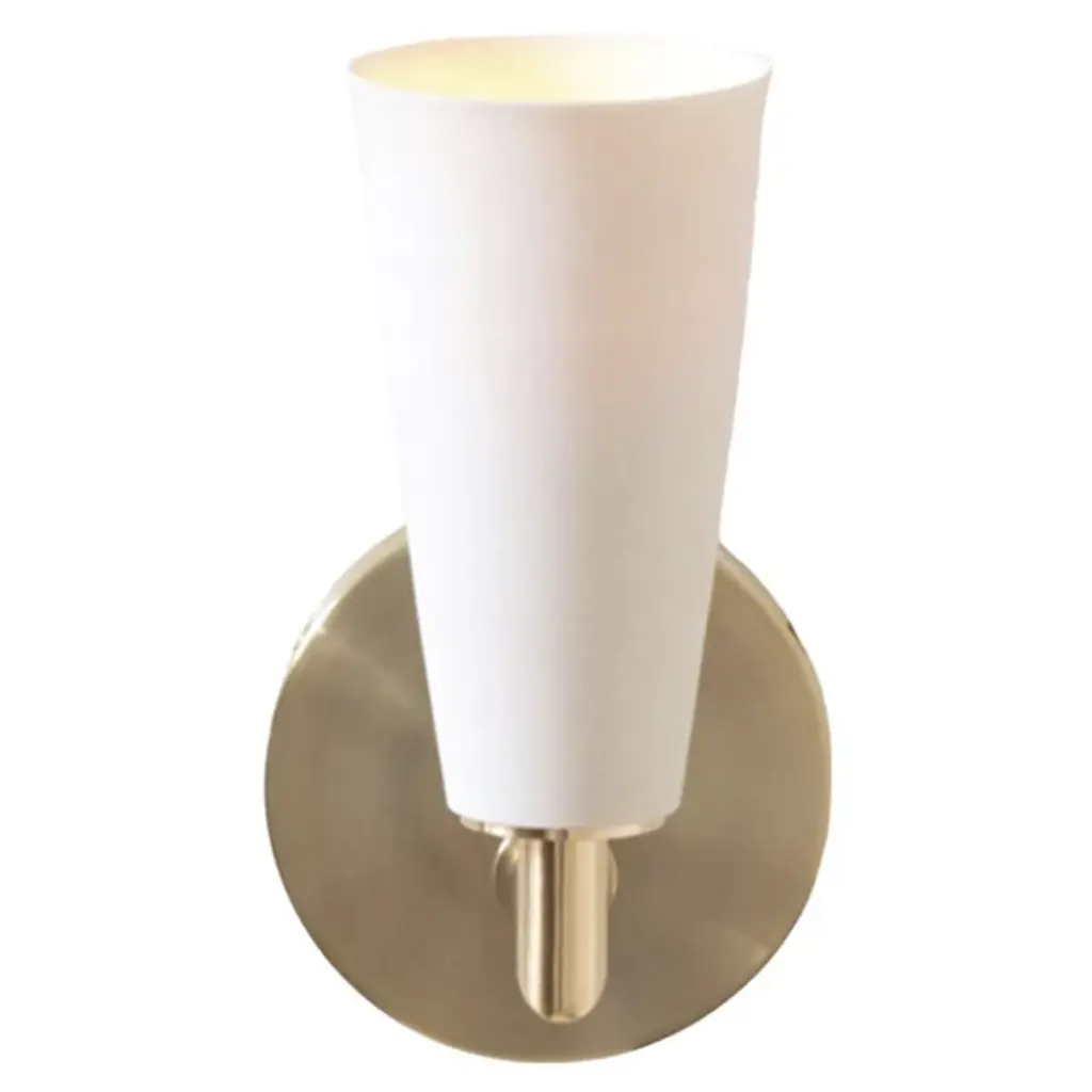 The Grace Wall Sconce from Roll & Hill possesses a straightforward design that adds a touch of warmth and familiarity to its surroundings, no matter the established motif. Its blend of softness and structure creates a light fixture that is both comforting and stylish as well as secure and durable. The backplate and stem are crafted from brass, while the porcelain shade diffuses light from the LED within to illumine its environment with softness.