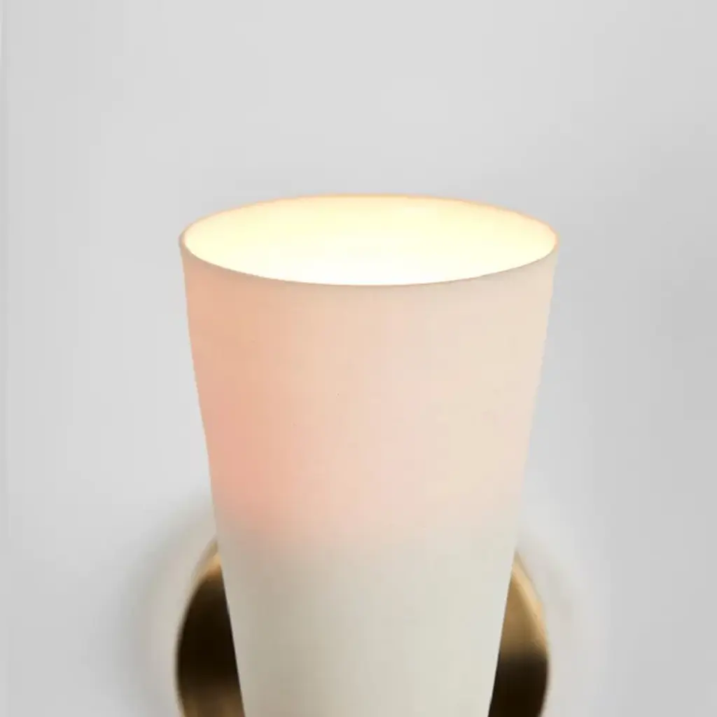 The Grace Wall Sconce from Roll & Hill possesses a straightforward design that adds a touch of warmth and familiarity to its surroundings, no matter the established motif. Its blend of softness and structure creates a light fixture that is both comforting and stylish as well as secure and durable. The backplate and stem are crafted from brass, while the porcelain shade diffuses light from the LED within to illumine its environment with softness.