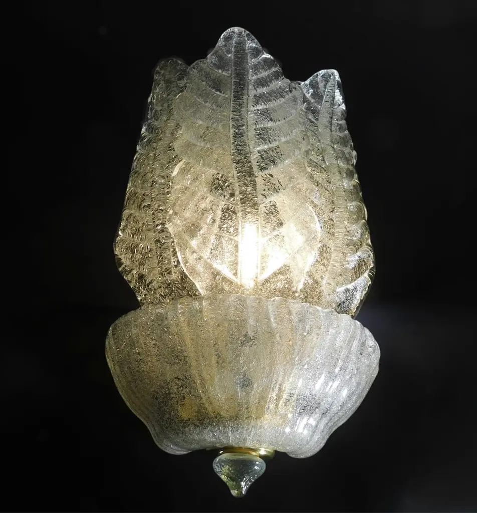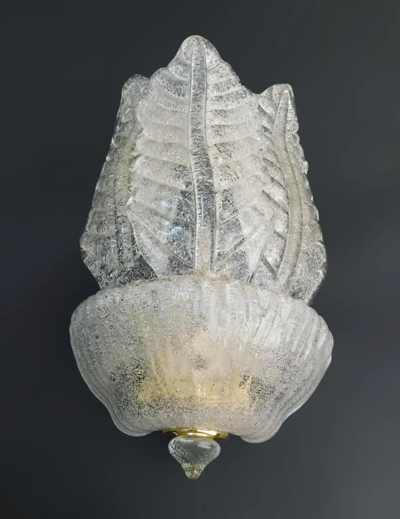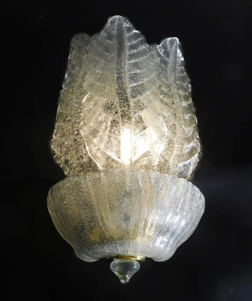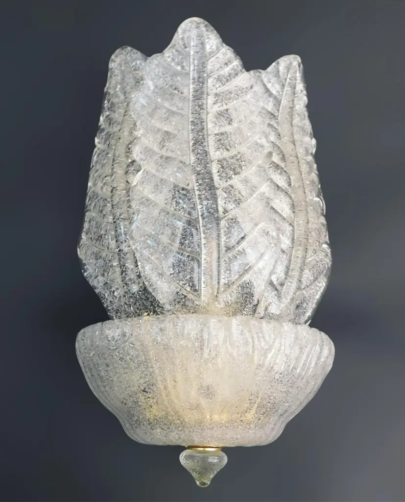 Vintage Italian wall lights with Murano glass leaves hand blown in Graniglia technique to produce granular textured effect / Made in Italy circa 1960sMeasures: Height 16.5 inches, width 10 inches, depth 5 inches1 light / E26 or E27 type / max 60W3 available in stock in Italy, price listed is for each itemOrder reference #: FABIOLTD L44