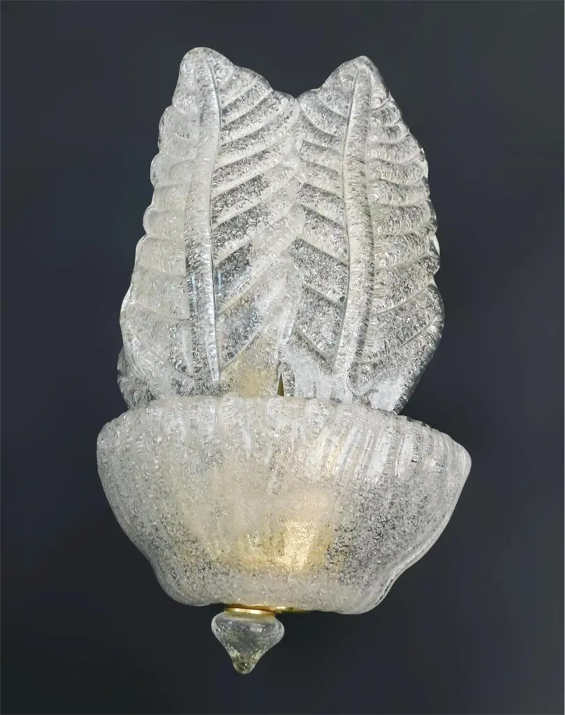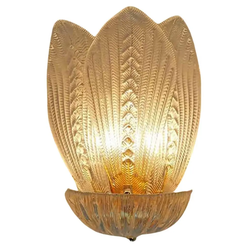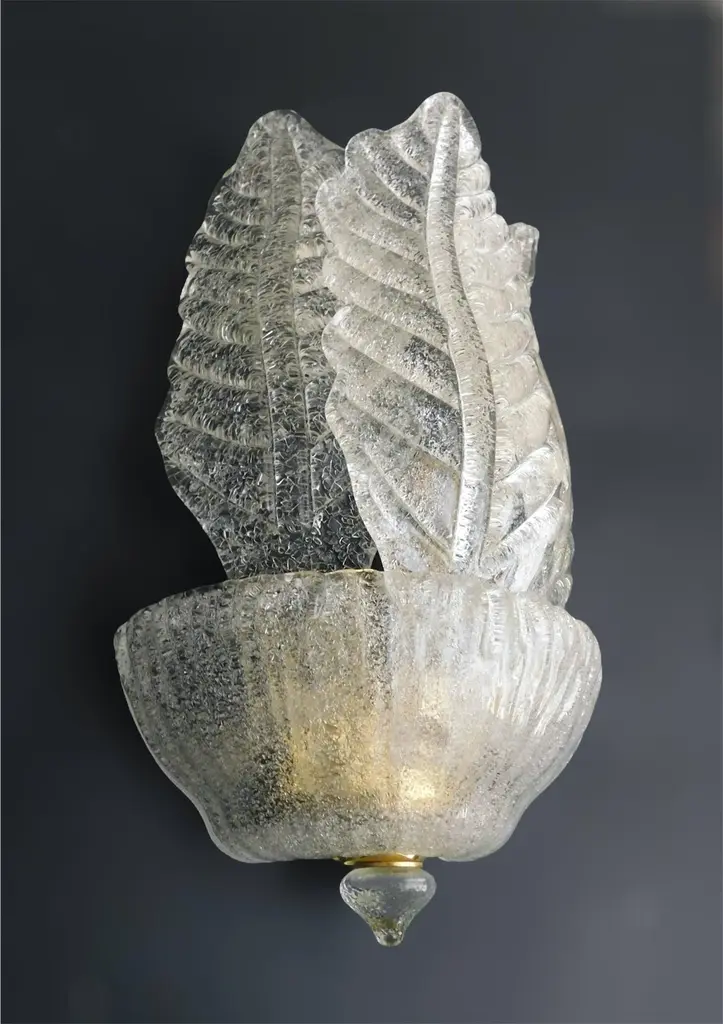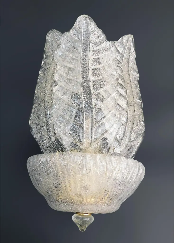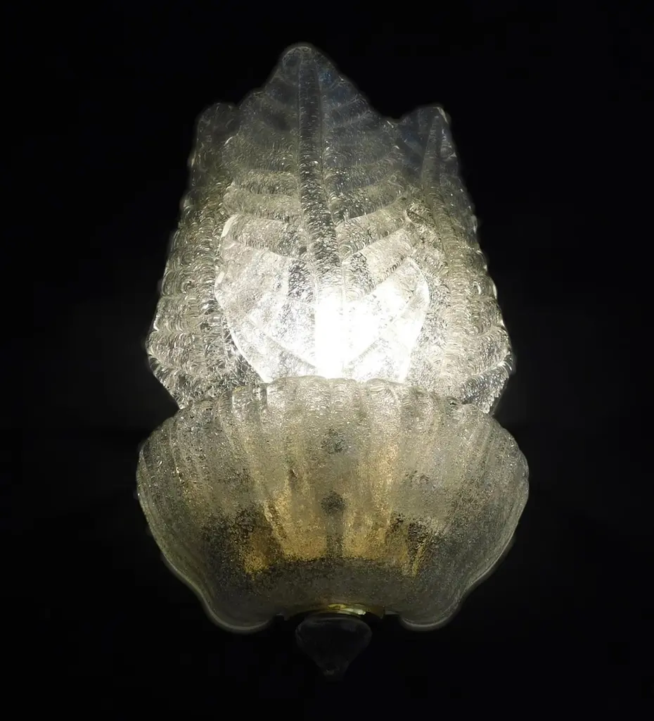 Vintage Italian wall lights with Murano glass leaves hand blown in Graniglia technique to produce granular textured effect / Made in Italy circa 1960sMeasures: Height 16.5 inches, width 10 inches, depth 5 inches1 light / E26 or E27 type / max 60W3 available in stock in Italy, price listed is for each itemOrder reference #: FABIOLTD L44