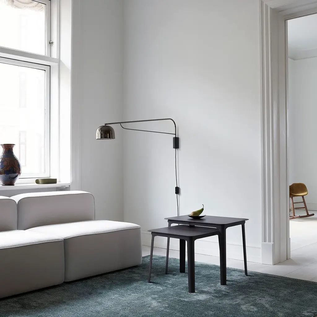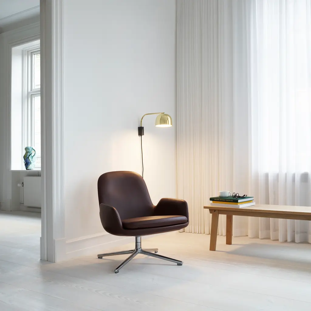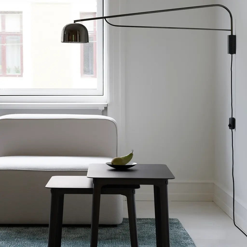 Striking to behold and space-saving as well, Norman Copenhagen offers dual versions of its wall-mounted Grant. The long-armed model bisects the surrounding interior to light up a lounge area or swing over a desk while the shorter-armed wall lamp makes a cozy bedside companion or brightens up a hallway. Polished shade moves side to side or tips up and down to direct the light from the fully dimmable, replaceable LED light source where it’s most desired.