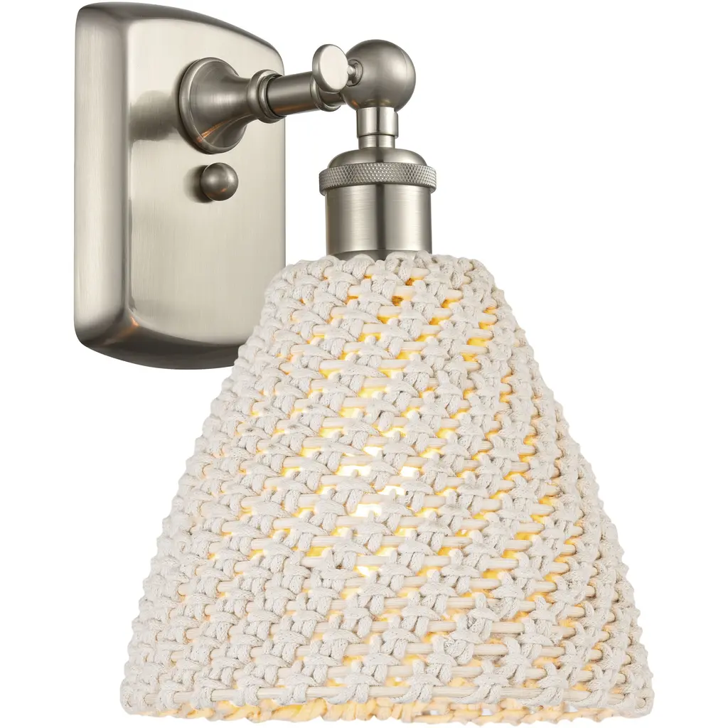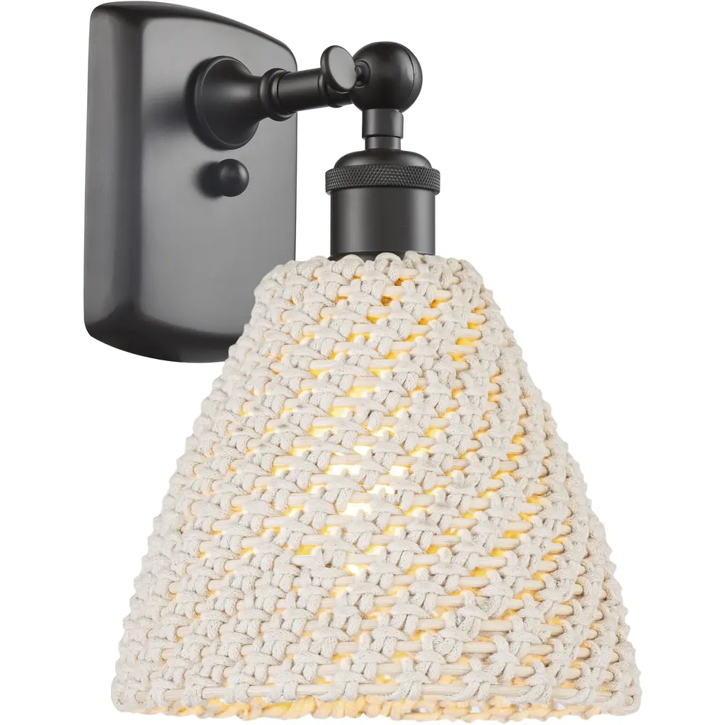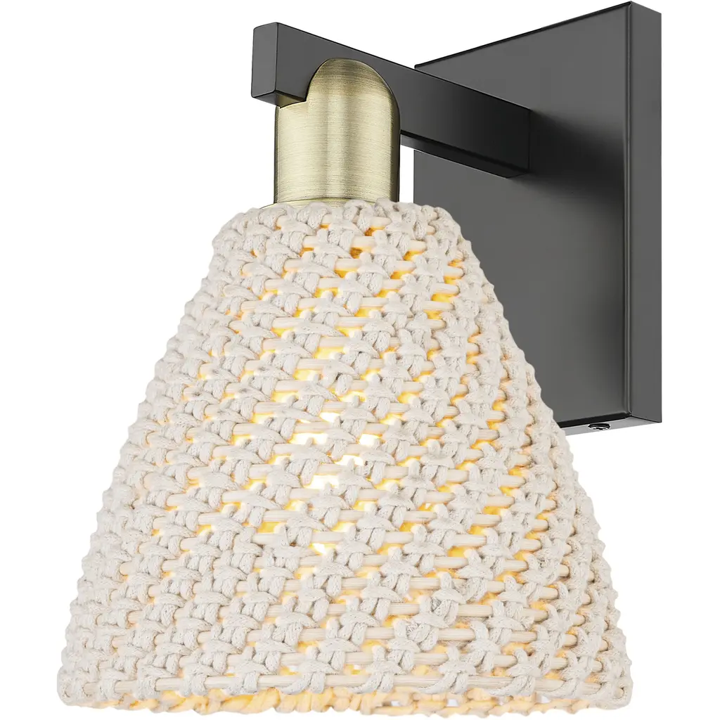 Bring transitional style to your home décor with the Green Oaks Wall Sconce by Palecek. Your wall sconce is part of Palecek’s Jeffrey Alan Marks Collection. A bin-shaped shade is intricately woven with a core rattan frame and rope for a sophisticated appearance. This light fixture houses a brilliant LED and is secured by a geometric backplate.