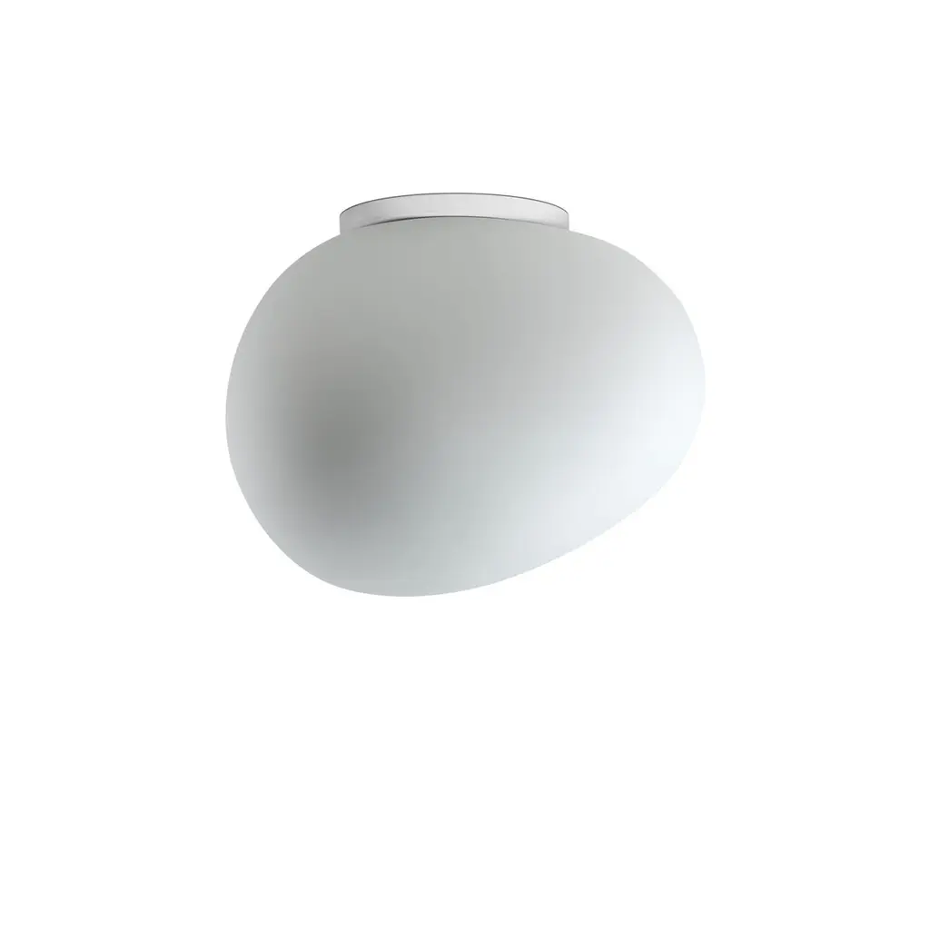 'Gregg' Ceiling or Wall Light by Ludovica & Palomba for FoscariniInspired by the shape of a pebble honed and smoothed by running water or the egg of a mythological creature, the 'Gregg' series for Foscarini features lamps that change depending on the observer’s perspective. Executed in hand-blown etched glass, the Gregg is perfect for creating organic, luminous compositions. The 'Gregg' series is designed by Ludovica and Roberto Palomba and produced by Foscarini, the Italian lighting firm founded in Venice on the legendary island of Murano, where generations of master glass blowers have skillfully used their unmatched imagination and skill to create the most innovative works of light into the modern era.Price is per item. Available to order in unlimited quantities and in four sizes. This listing is for the medium version (midi). Also available in an outdoor version in a separate listing.In stock lead time 1-2 weeks. Out of stock can add 12 weeks or more. Please note that inventory availability can change without notice. Kindly inquire for current lead times prior to placing time sensitive orders.Accommodates 1x max 20W LED E12 type G bulb (not included). This lamp is ETL listed. Not UL listed, but recommended UL listing possible from an authorized 3rd party vendor for an additional fee. Contact us to facilitate.Made to order. All sales final.