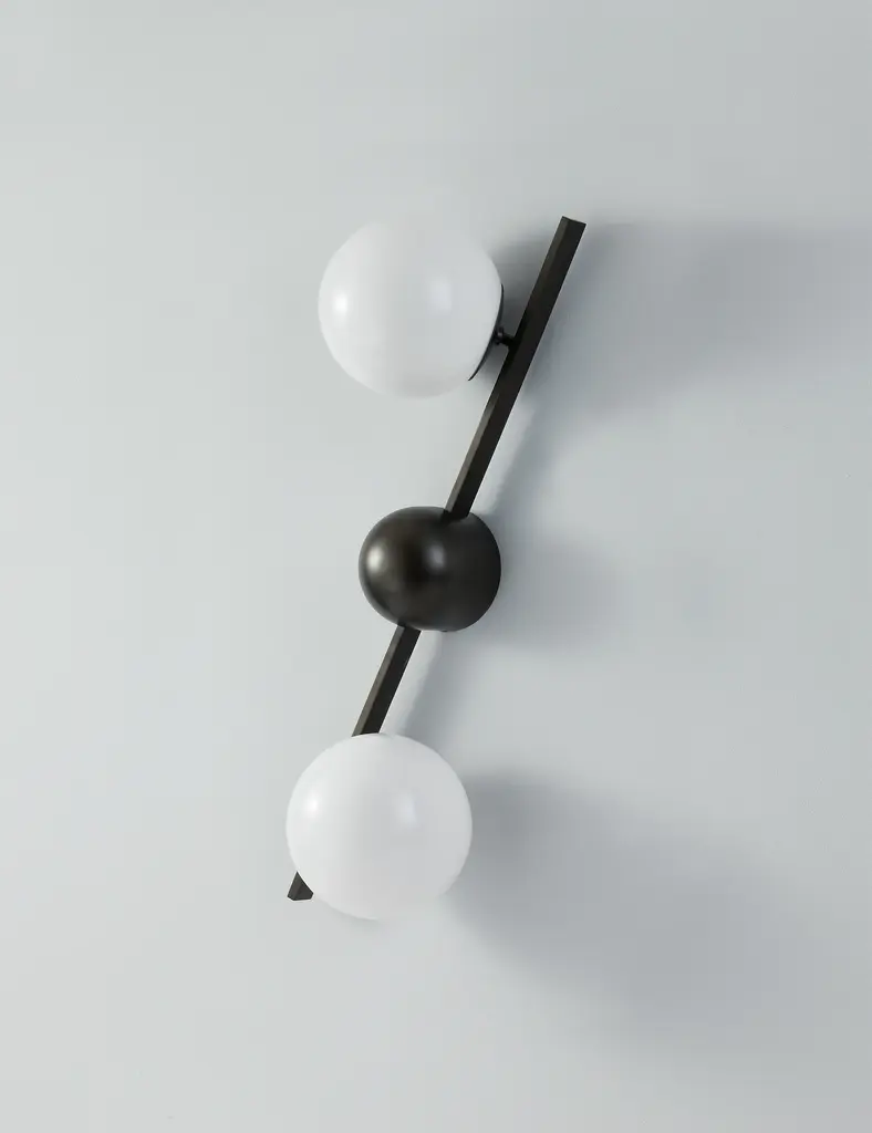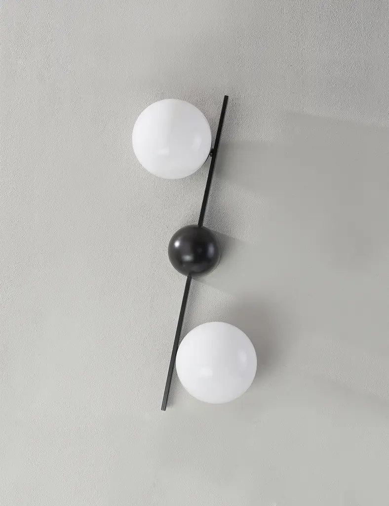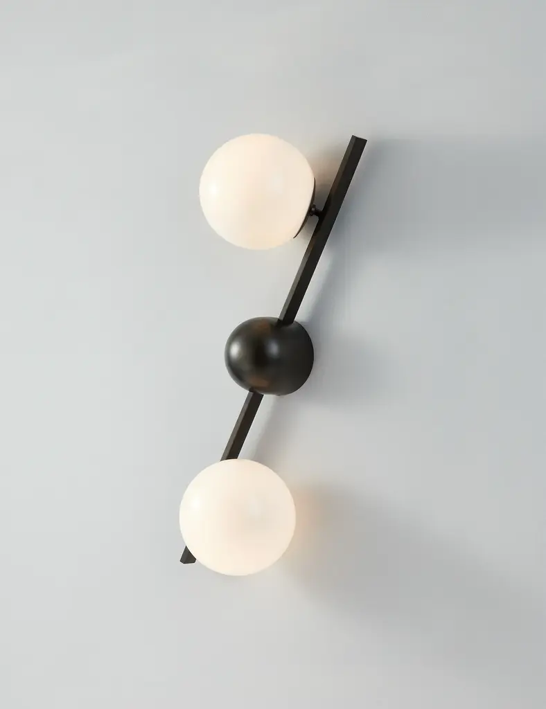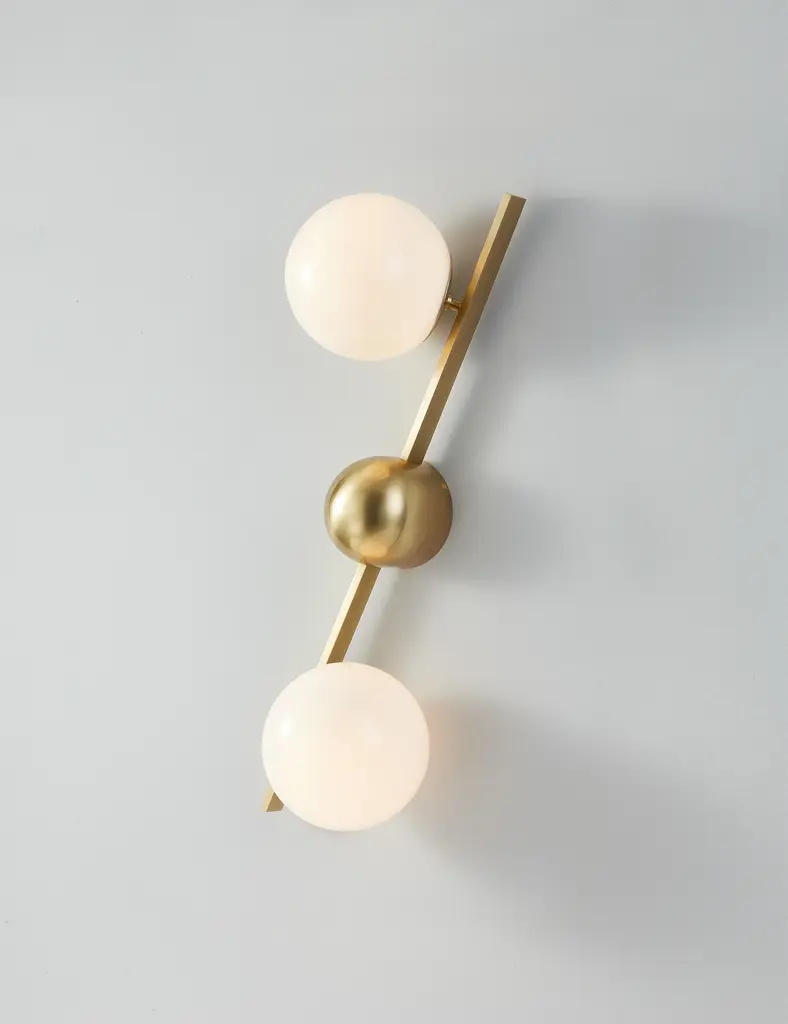Greta brings a modern edge to sconce lighting. A domed backplate with square arms holds two opal glass globes to offer ample light with a chic edge. The sconce's dynamic design is fully adjustable, allowing the shades to be positioned in line with the backplate, both horizontally and vertically.
