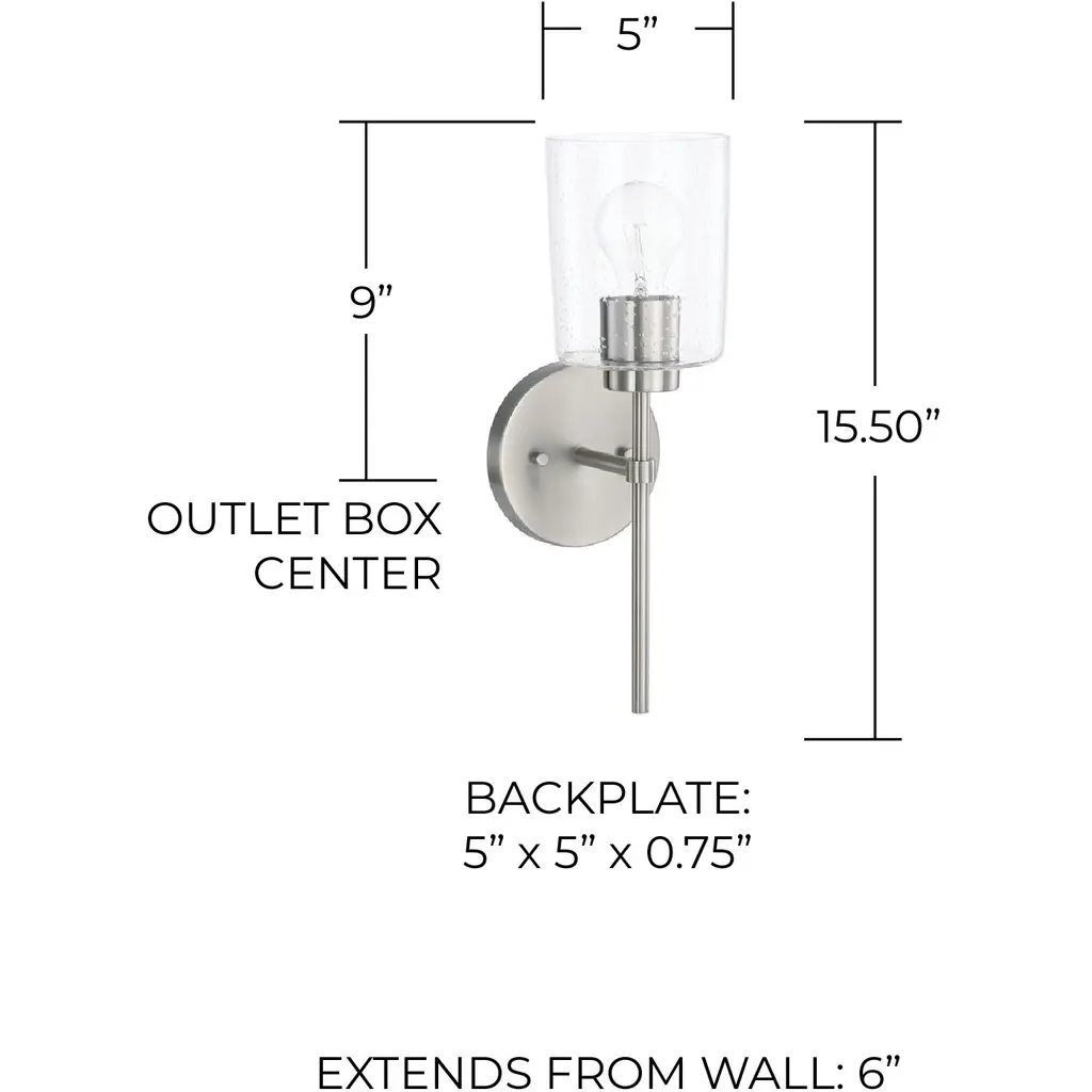 5" 1-Light Clear Seeded Glass Sconce in Brushed Nickel in Washed Grey