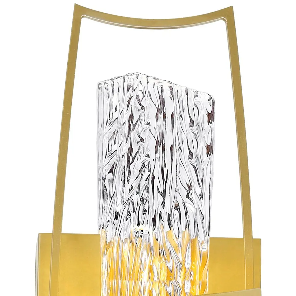 This exquisite Guadiana 5'' Modern Satin Gold LED Wall Sconce is a beautiful addition from our Guadiana Collection. Designed to enhance modern interiors, it features a minimalist rectangular metal frame in satin gold paired with a textured glass diffuser that softens the LED glow. Whether you're layering lighting in a dining room, bedroom, or hallway, this wall sconce brings warmth, dimension, and elegant style. Its the perfect fixture to modernize any space without overwhelming the design. Finish: Satin Gold Light Count: Integrated LED Light Source: LED, No Bulb Required Adjustable Hanging Height: N/A Material: Metal & Textured Glass Style: Modern / Contemporary