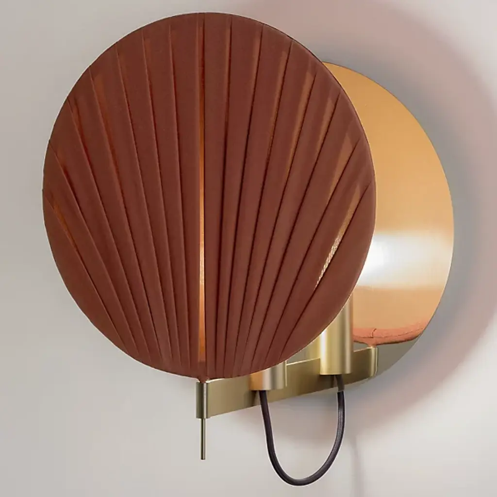 Give your living space artisanal modern style with the Guinea Wall Sconce by Servomuto. Your wall sconce is illuminated by a bright LED, the light of which reflects off of a rattan shade complemented by jacquard fabric, which boasts a fine ribbed pattern. This wall sconce’s meticulous design gives it a pleated look that draws your gaze. The Guinea wall sconce is secured by an oversized metal backplate at your wall.