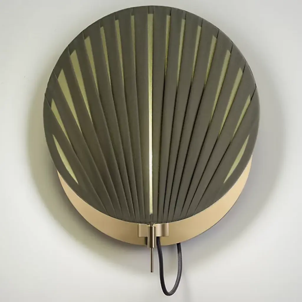 Give your living space artisanal modern style with the Guinea Wall Sconce by Servomuto. Your wall sconce is illuminated by a bright LED, the light of which reflects off of a rattan shade complemented by jacquard fabric, which boasts a fine ribbed pattern. This wall sconce’s meticulous design gives it a pleated look that draws your gaze. The Guinea wall sconce is secured by an oversized metal backplate at your wall.