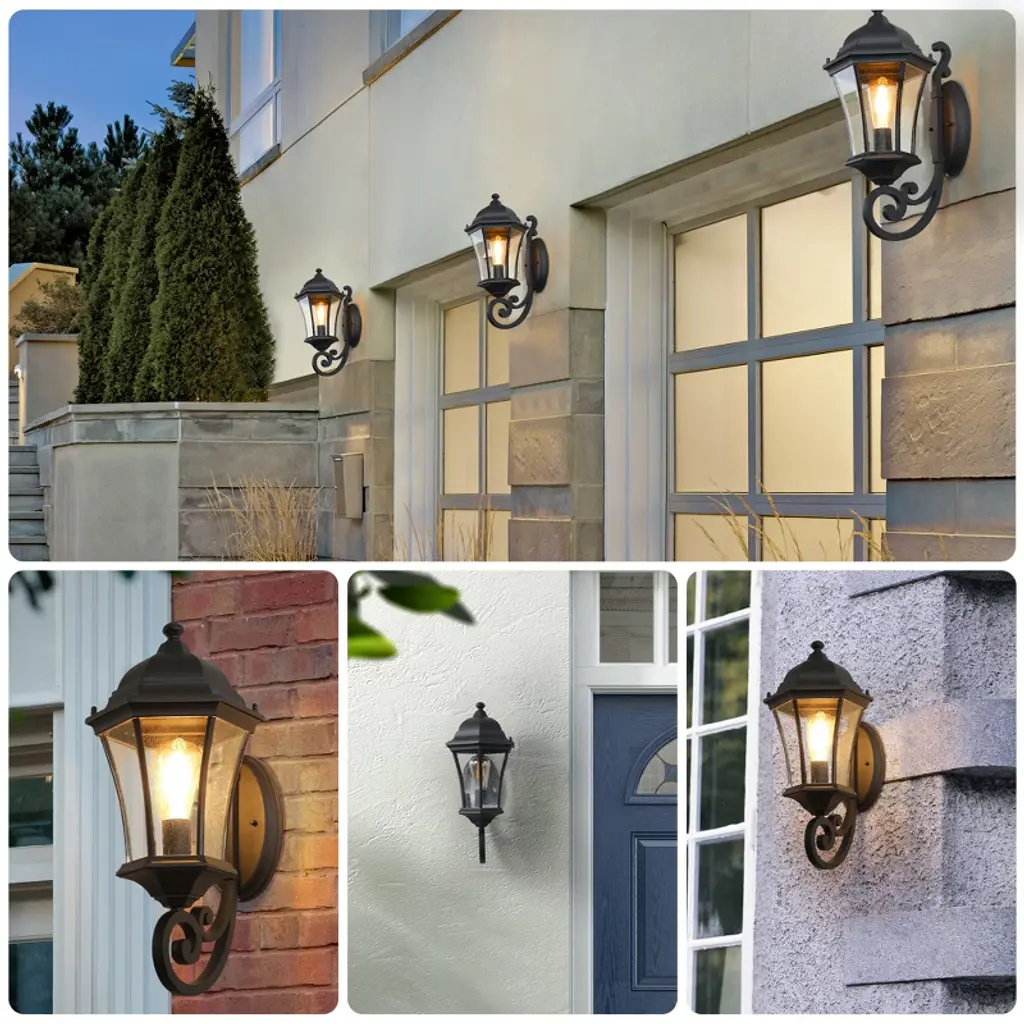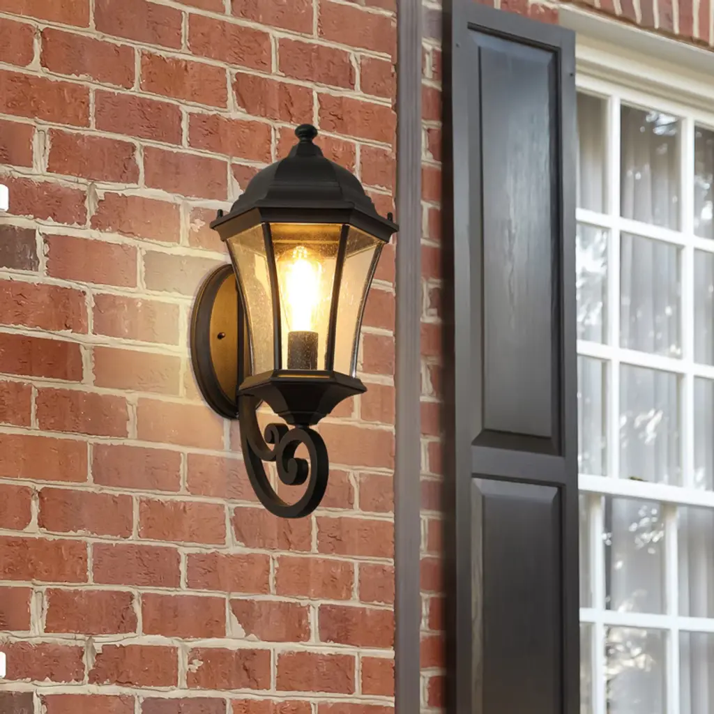 Enhance your outdoor spaces with the timeless elegance of the Gulches Outdoor Wall Lights. This vintage wall-mounted lantern, with its classic black metal finish, adds a touch of sophistication to your porch, patio, or garden. The frosted glass panels create a warm and inviting glow, perfect for any exterior setting. Designed for versatility, it accommodates a 60W E26 base bulb, offering compatibility with various bulb types. With easy installation and a durable design, this lantern is a stylish and practical addition to your home's exterior decor.