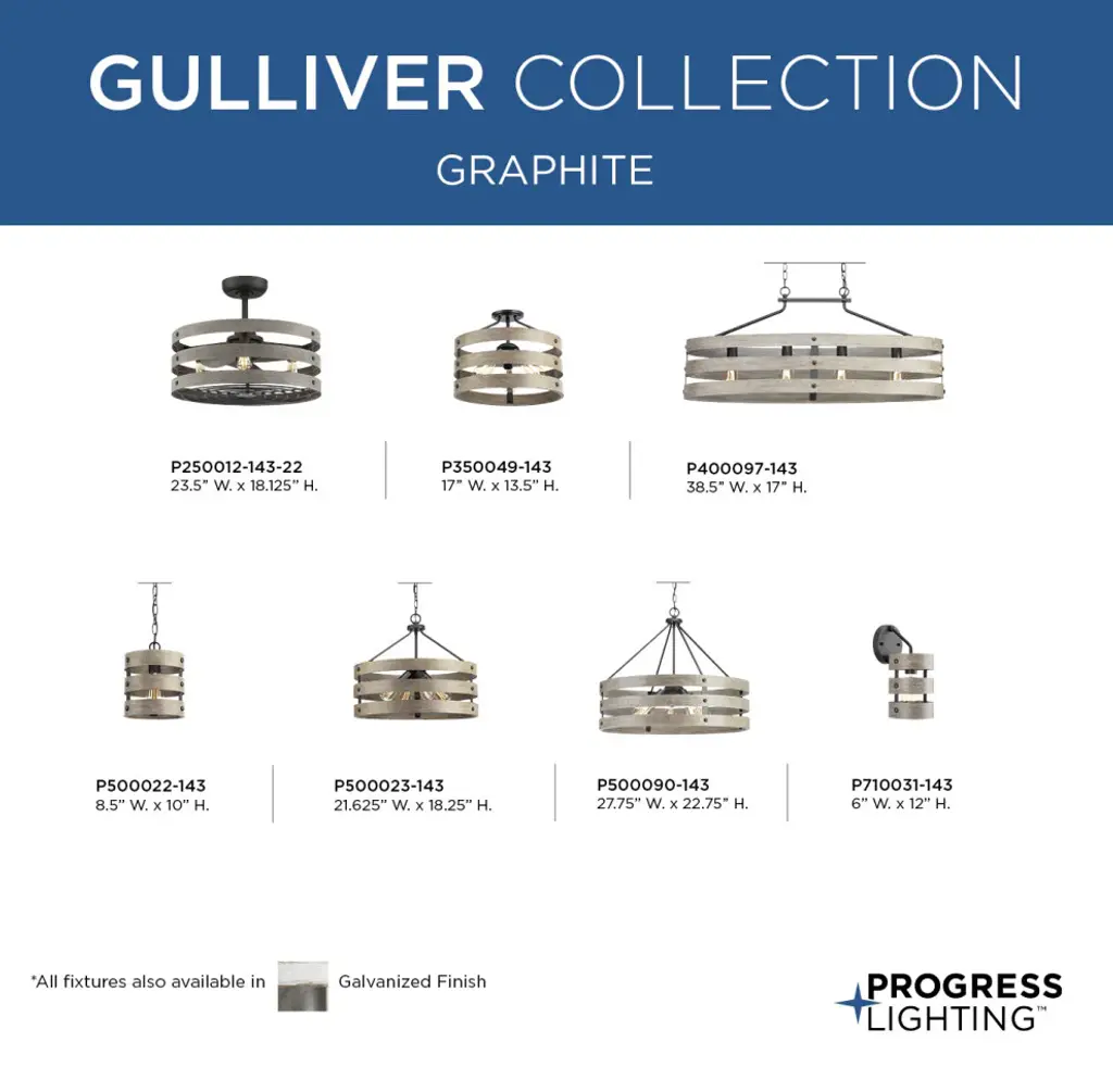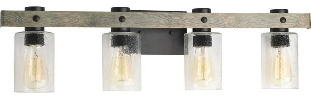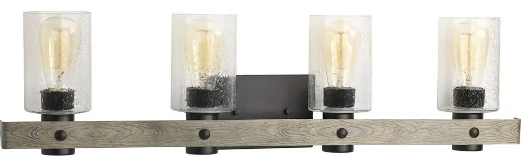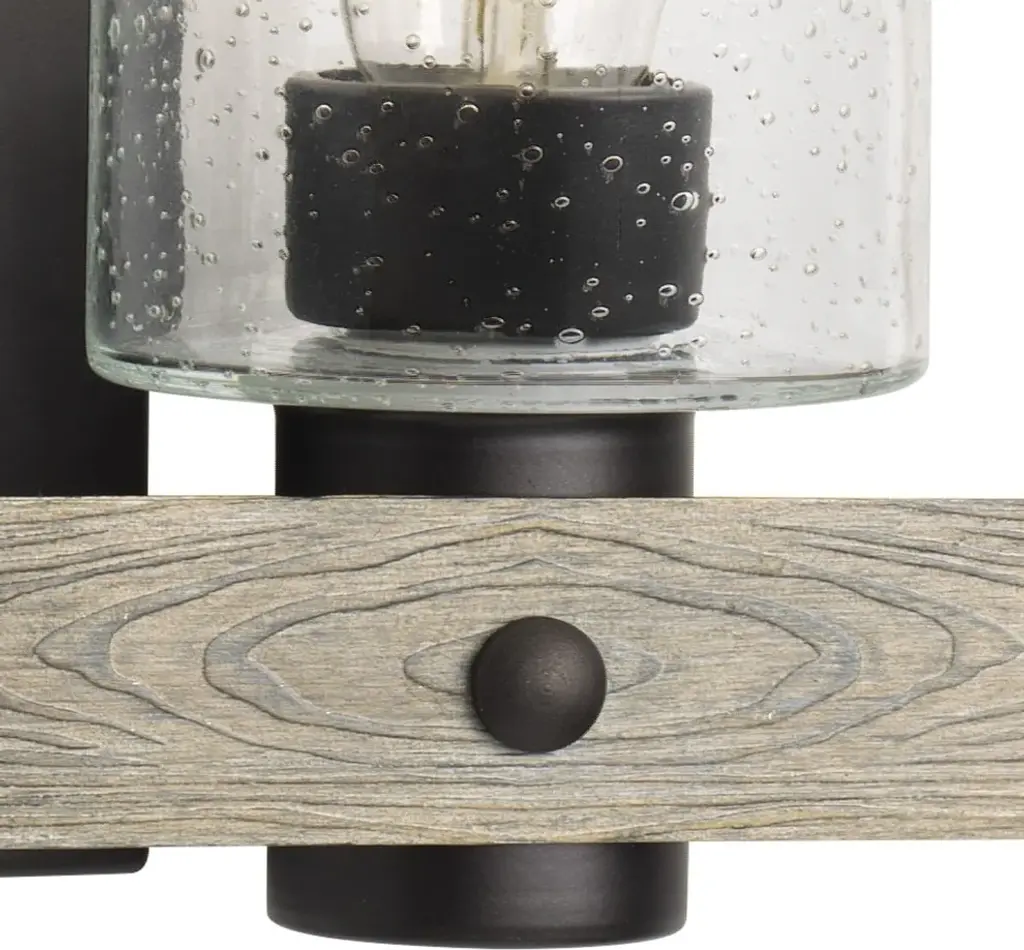 Dual toned frame color combinations of Graphite with weathered gray accents. A hand painted wood grained texture complements Rustic and Modern Farmhouse home decor, as well as Urban Industrial and Coastal interior settings. Uses (4) 60-watt medium bulbs (not included). UL Certified: NoETL Certified: Yes