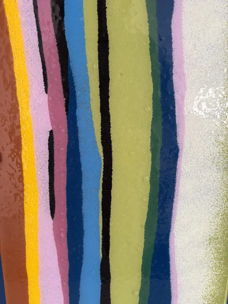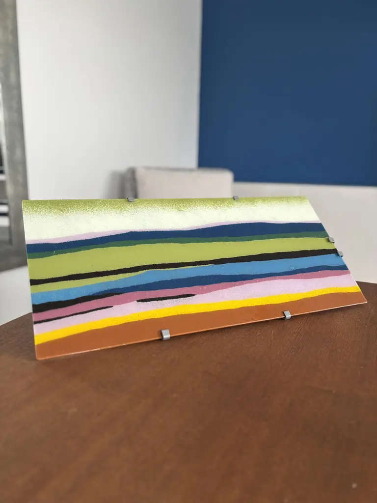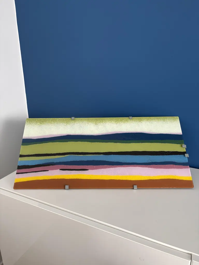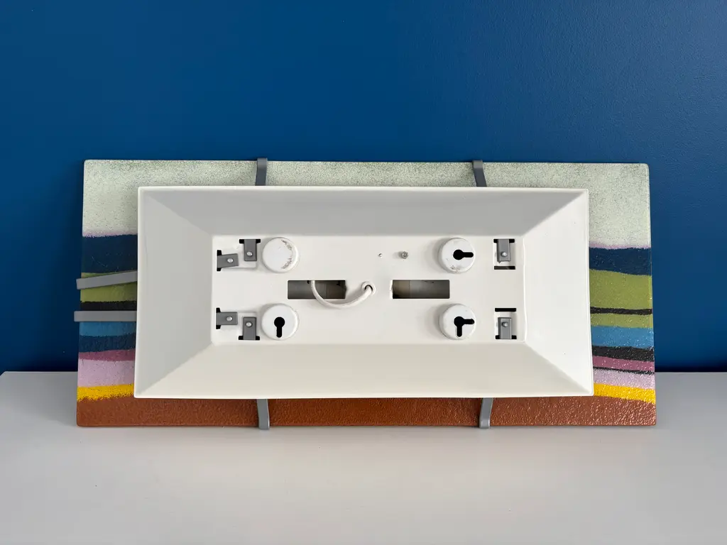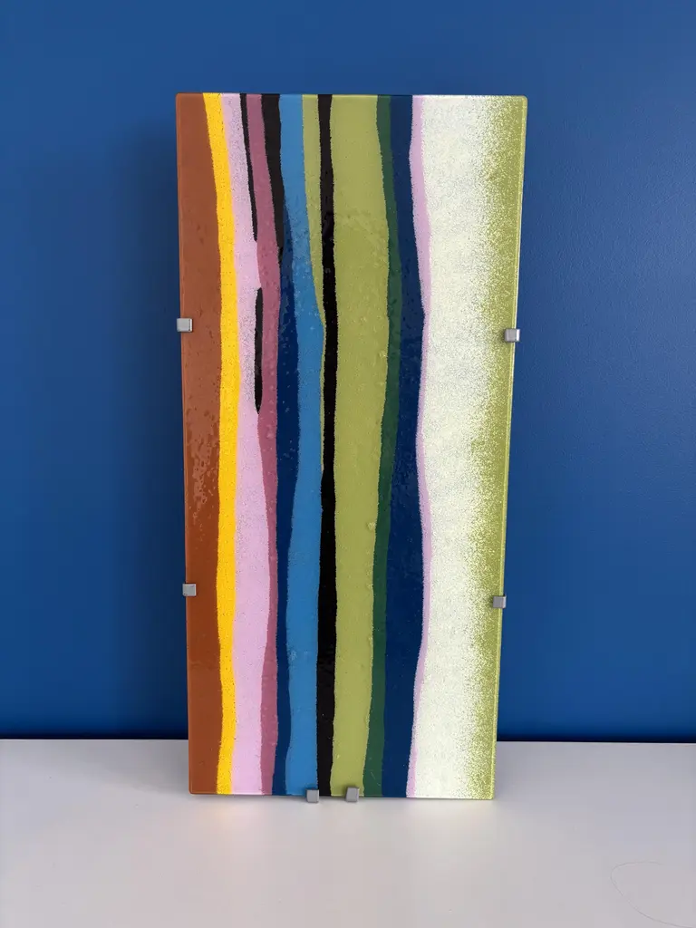 Year: 1990 • Material: Glass worked with painted colored patterns • Dimensions: 58x27x10 • Style: Graphic and modern, perfect for a vintage or eclectic interior • Condition: Very good general condition, some light signs of wear corresponding to its age. Cable to be connected to an existing installation via a domineau. 2 bulbs. Recommended use: This wall light can be attached to the wall to illuminate a space with originality or used as a stand-alone decorative element. It fits easily into a contemporary or retro decoration. Bring back the best of 90s IKEA design with this rare and sought-after decorative piece! This piece has an attribution mark, I am sure that it is completely authentic and take full responsibility for any authenticity issues arising from misattribution, Up to 250V (Europe/UK Standard).The wiring of this item may be original and might need replacement, if not specified otherwise.