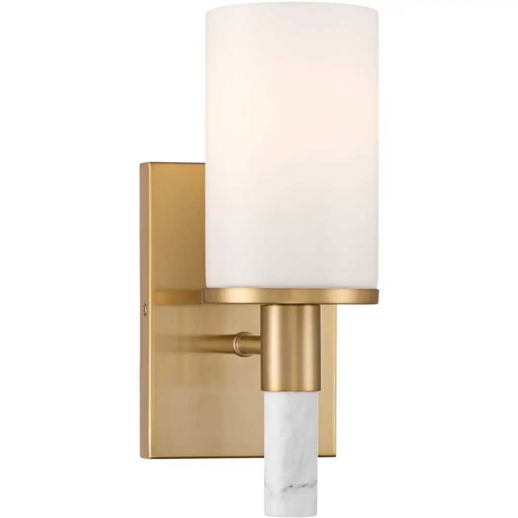 The Gypsum LED Wall Sconce from Kalco Lighting draws botanical inspiration from Pinecone shapes, infusing a soft Art Deco aesthetic. Its design showcases a cylindrical, slightly bulged natural Alabaster stone cylinder, gently diffusing LED light for a luxurious ambiance. It is available in True Brass and equipped with driverless LED technology. This fixture combines timeless elegance with modern functionality, casting a soft and inviting glow to enhance any space with sophistication.