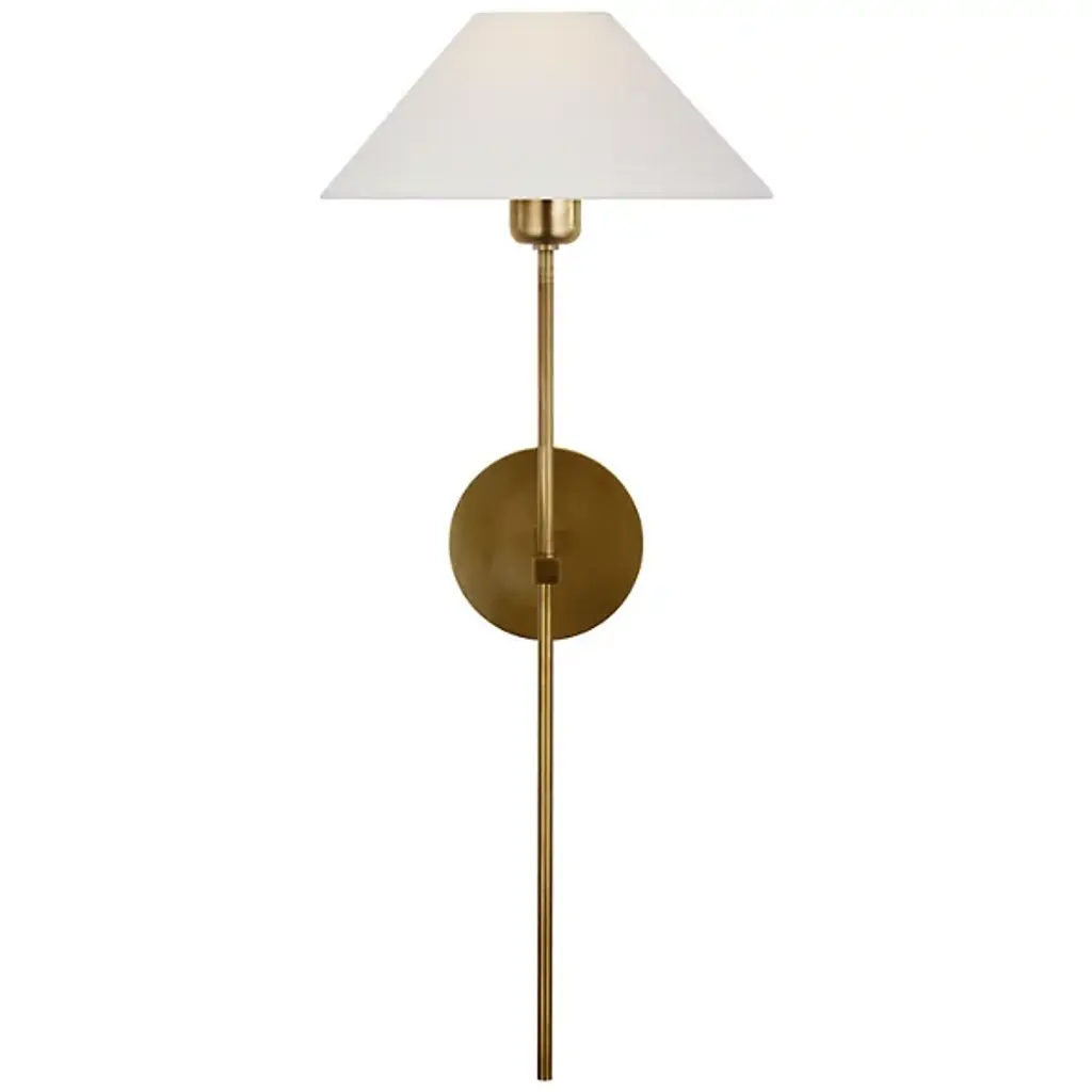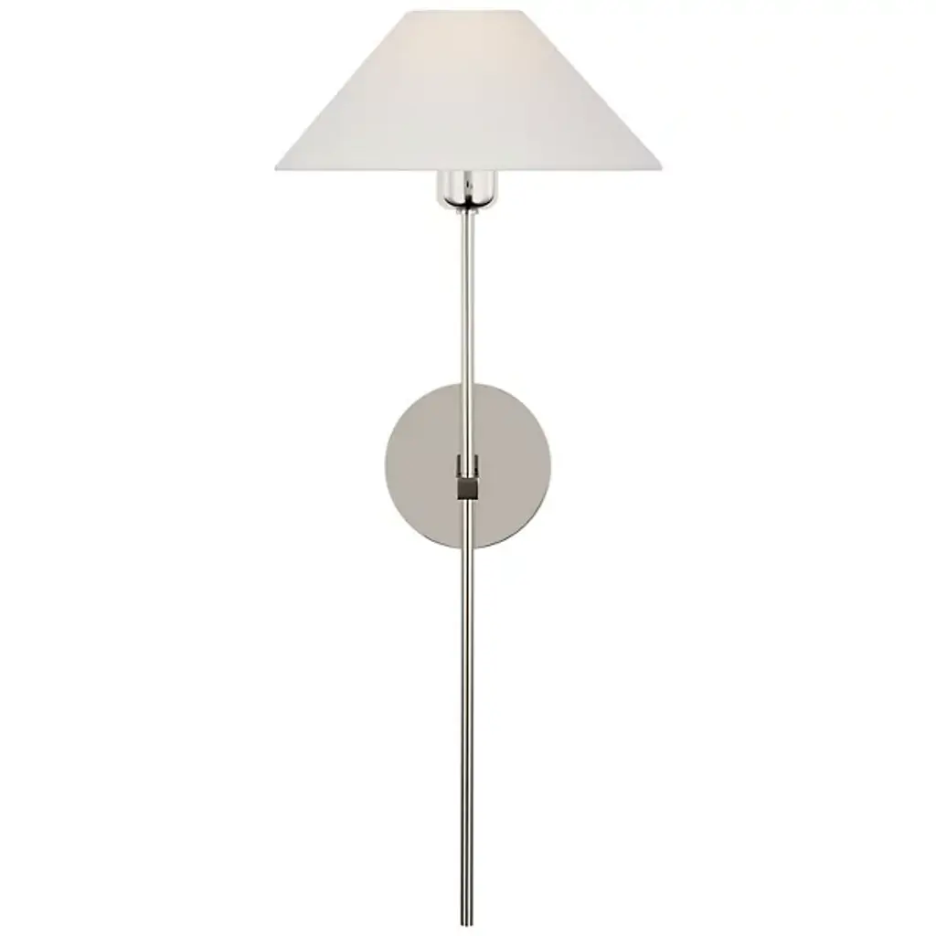 Tell the story of your home décor in as few words as possible with the Hackney Single Wall Sconce by Visual Comfort Signature, formerly known as Visual Comfort, This ultra-trendy design by J. Randall Powers features a sleek wall plate backing a clean, angular structure that supports an elegant triangular shade. Uncomplicated yet assertive, the sconce flatters any room without distracting from nearby furniture, wall hangings and decorative elements.