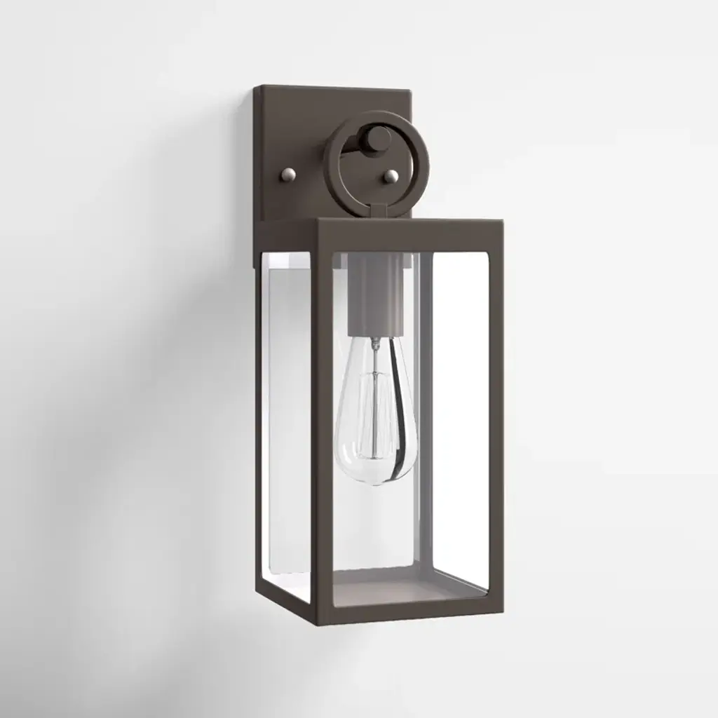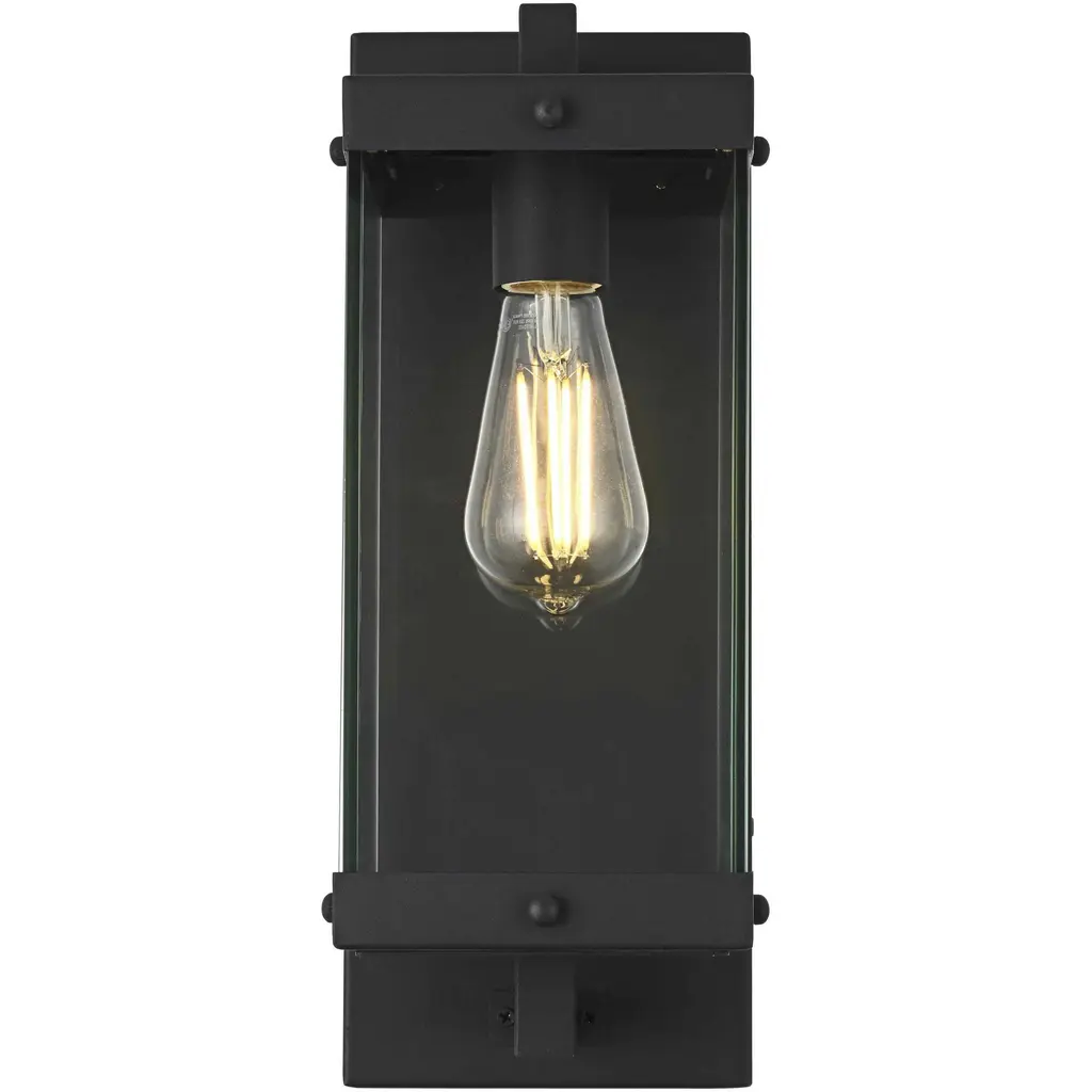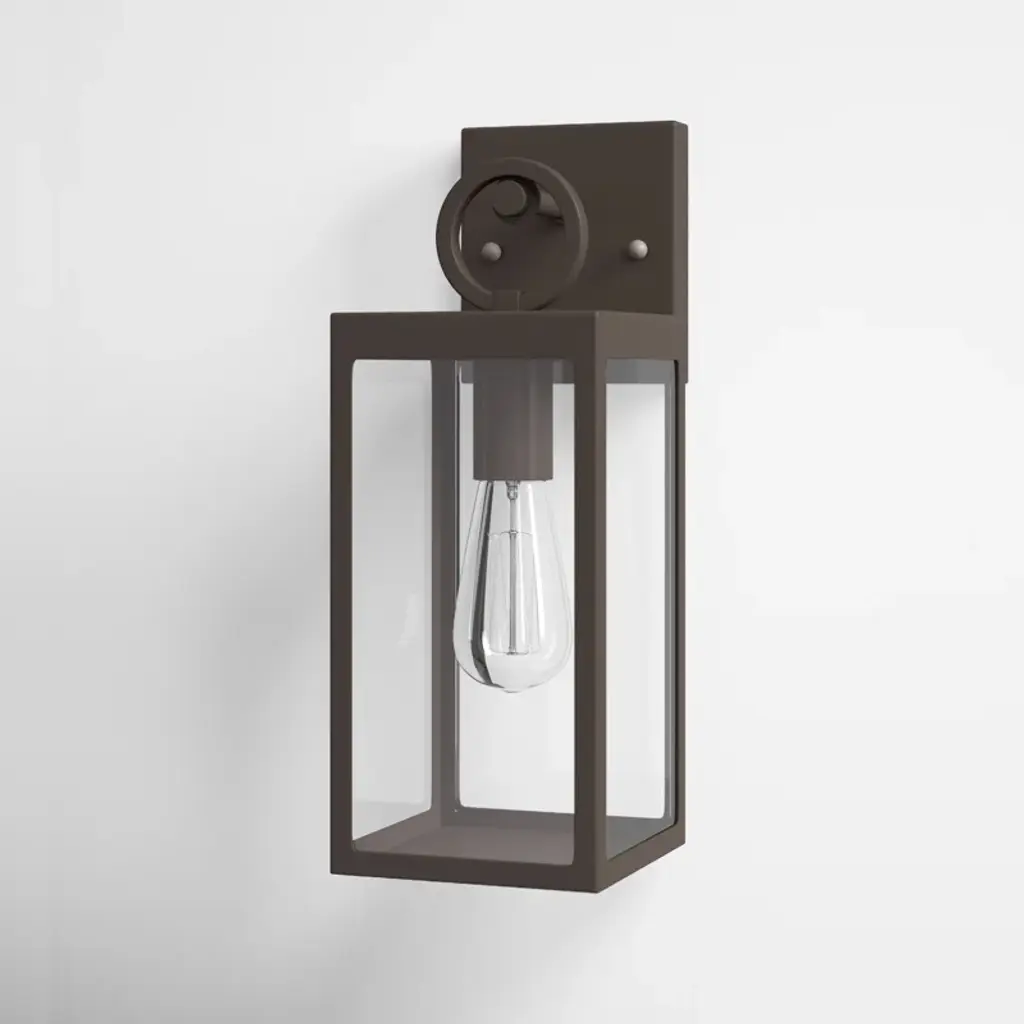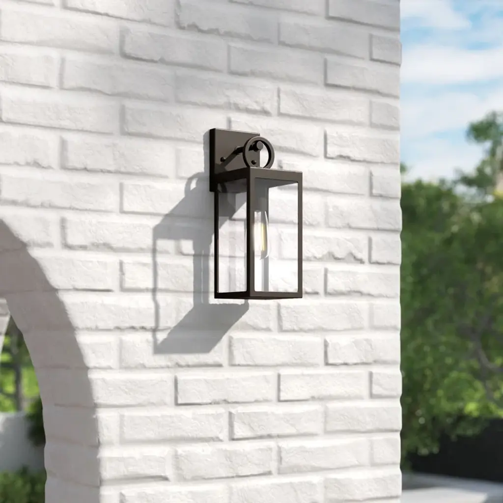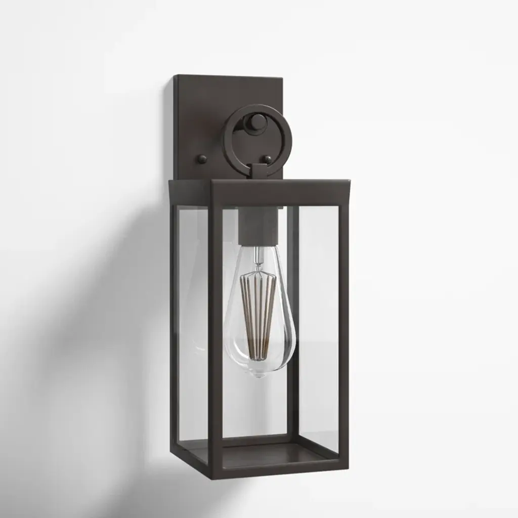 Add a welcoming glow to your covered porch or ambiance on your backyard deck with this wall lantern. Safe to use in covered outdoor areas, it's made from metal with a rich, warm oil-rubbed bronze finish. We love the look of the rectangular backplate and the contrast with the circular ring support, which makes it look as if this lantern is hung instead of mounted. Inside the clear glass shade, this lantern houses a medium-base bulb of up to 60W. For added ambiance, this lantern looks great with an Edison-style bulb.