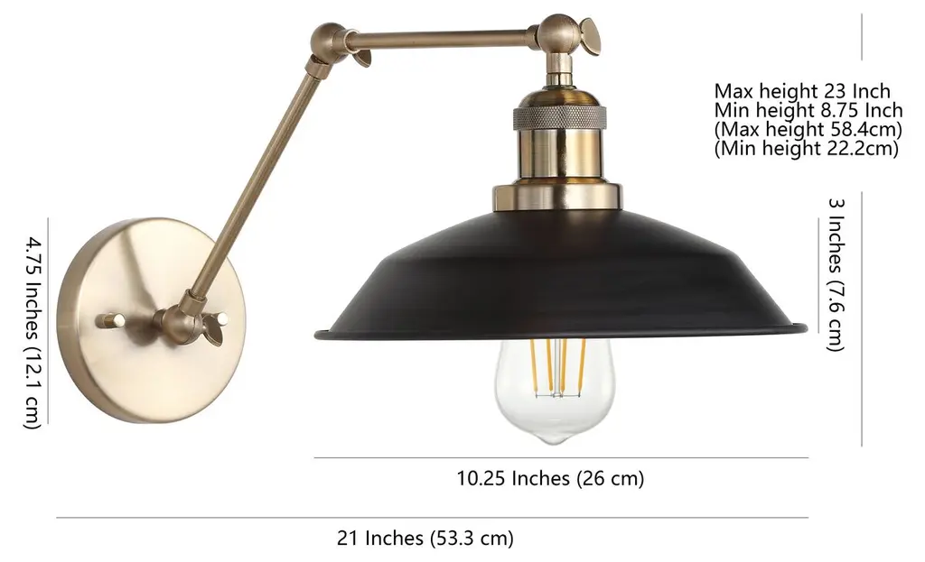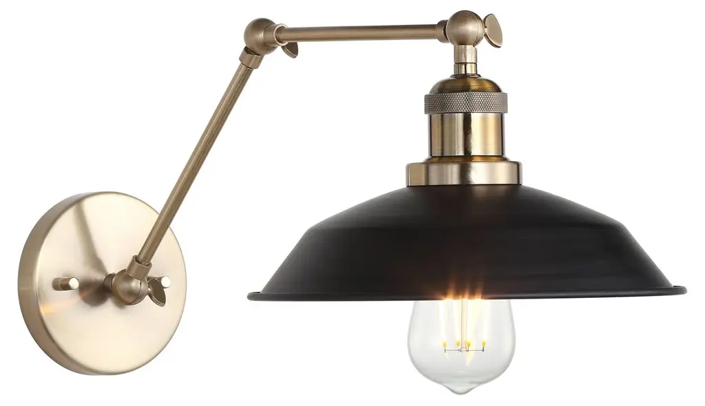 The black shade and the brass finish give this industrial-chic sconce a glamorous update. Hardwired.