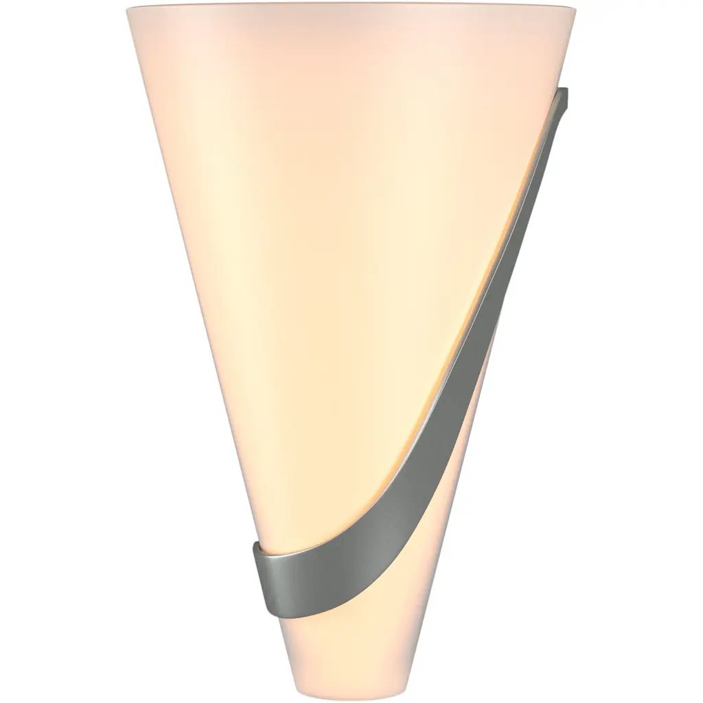 A shapely wall sconce that sweeps away any thought of its competition. The elegant, rugged and somewhat whimsical Half Cone with Sweep Wall Sconce by Hubbardton Forge is sure to give your wall extra style points. Its design is ostensibly simple, with a simple cone-shaped shade crafted with care and style from Hand Blown Glass. What sets the fixture apart is its frame, sturdily forged from Wrought Iron into a swooping angled shape to add visual variety.