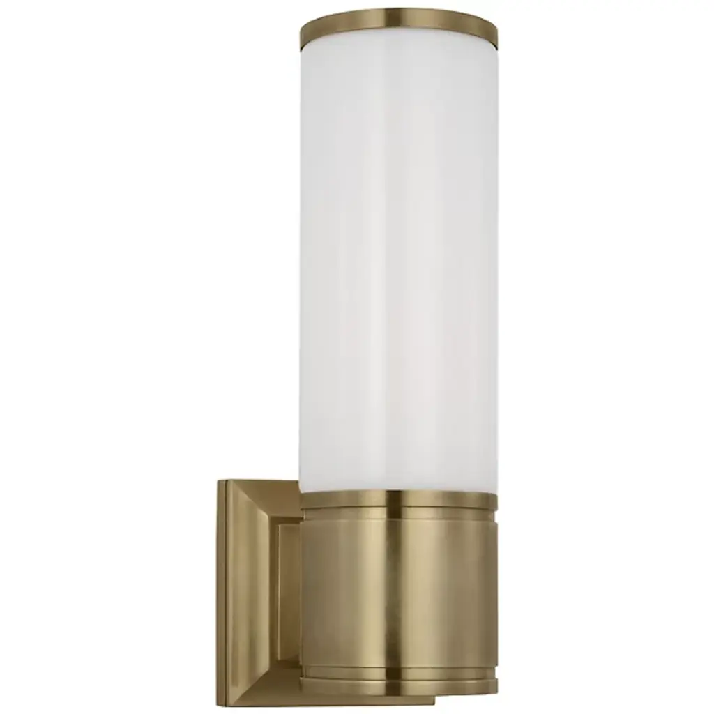 The Halford LED Wall Sconce from Visual Comfort Signature demonstrates Chapman & Myers' understanding of classical proportions. The brass foundation supports a cylindrical glass shade, creating a balanced light distribution. This wall-mounted fixture works exceptionally well in pairs flanking mirrors, as singular accents in hallways, or arranged in series along corridors. The traditional design pays homage to vintage lighting while incorporating refined details that make it suitable for modern applications.