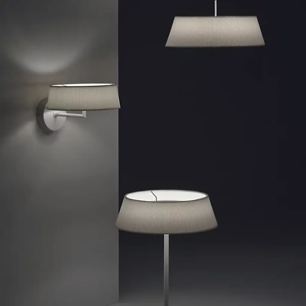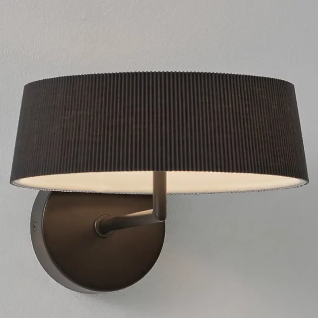 The Halo LED Wall Sconce from Seed Design combines nostalgic charm with modern functionality. Designed by Chen Chao Cheng, its finely pleated fabric shade pairs elegantly with a circular steel and aluminum frame, softly diffusing light for a warm, natural glow. The integrated high-CRI LED enhances colors beautifully, creating a soothing ambiance reminiscent of sunlight. The Halo blends caps off contemporary or mid-century modern interiors with ease, offering versatile function and gentle illumination.
